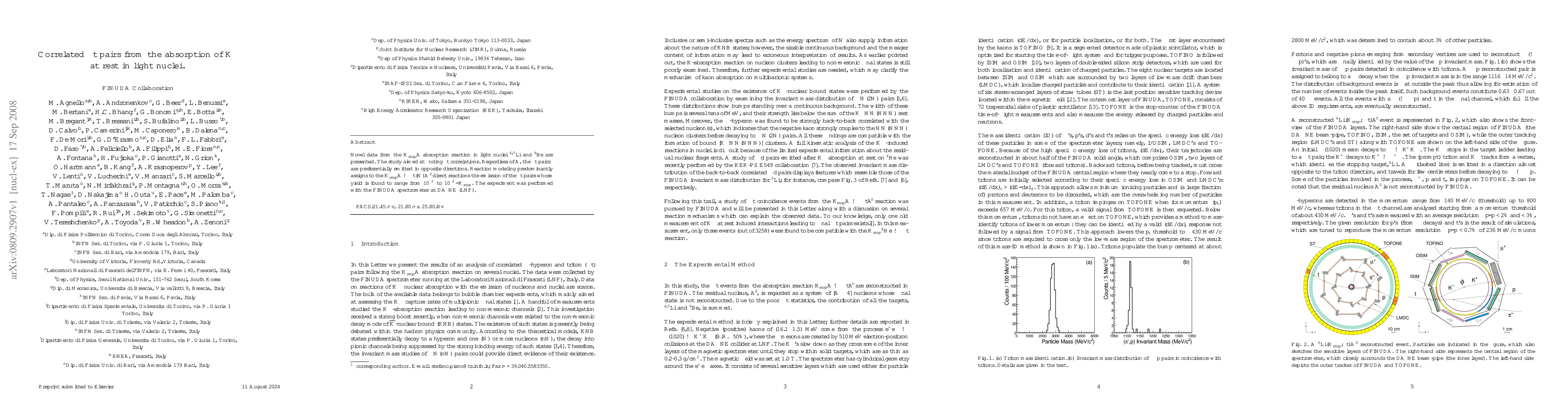 Novel data from the $K^{-}_{stop}A$ absorption reaction in light nuclei $^{6,7}$Li and $^{9}$Be are presented. The study aimed at finding $\Lambda t$ correlations. Regardless of $A$, the $\Lambda t$ pairs are preferentially emitted in opposite directions. Reaction modeling predominantly assigns to the $K^-_{stop}A\to\Lambda t(N)A'$ direct reactions the emission of the $\Lambda t$ pairs whose yield is found to range from $10^{-3}$ to $10^{-4}$$/K^-_{stop}$. The experiment was performed with the FINUDA spectrometer at DA$\Phi$NE (LNF).