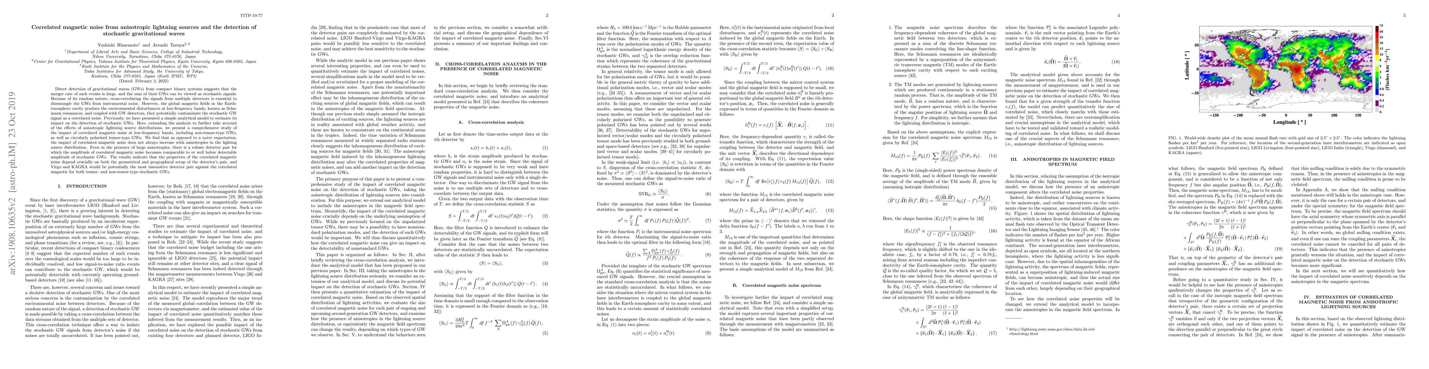 This paper investigates the impact of correlated magnetic noise from anisotropic lightning sources on the detection of stochastic gravitational waves (GWs). It finds that despite large anisotropies in lightning distributions, certain detector pairs, such as Virgo and KAGRA, can effectively minimize the noise, making them robust against correlated magnetic noise for both tensor-type and non-tensor-type stochastic GWs.