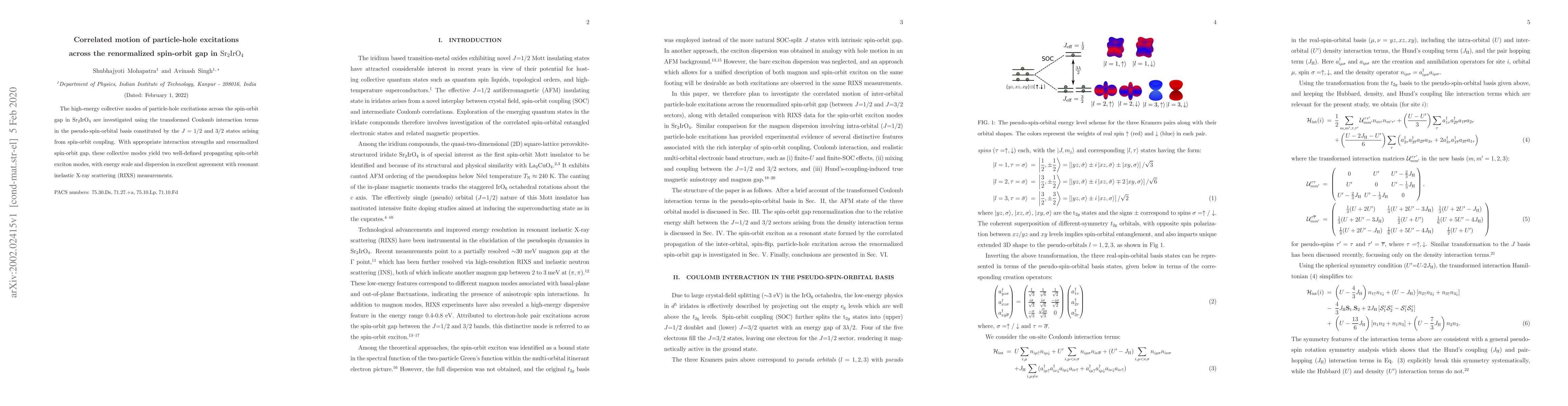 The high-energy collective modes of particle-hole excitations across the spin-orbit gap in $\rm Sr_2IrO_4$ are investigated using the transformed Coulomb interaction terms in the pseudo-spin-orbital basis constituted by the $J=1/2$ and $3/2$ states arising from spin-orbit coupling. With appropriate interaction strengths and renormalized spin-orbit gap, these collective modes yield two well-defined propagating spin-orbit exciton modes, with energy scale and dispersion in excellent agreement with resonant inelastic X-ray scattering (RIXS) measurements.