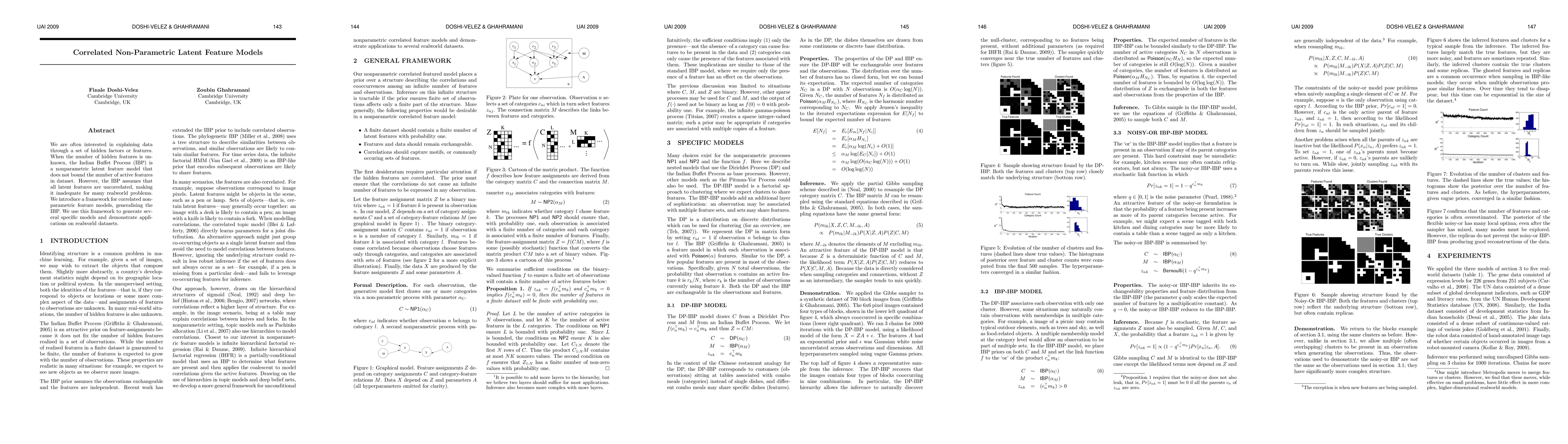 This paper proposes a framework for correlated nonparametric latent feature models, generalizing the Indian Buffet Process to account for feature correlations. It demonstrates applications of the new models on real-world datasets, showing improved explanatory power over traditional uncorrelated models.