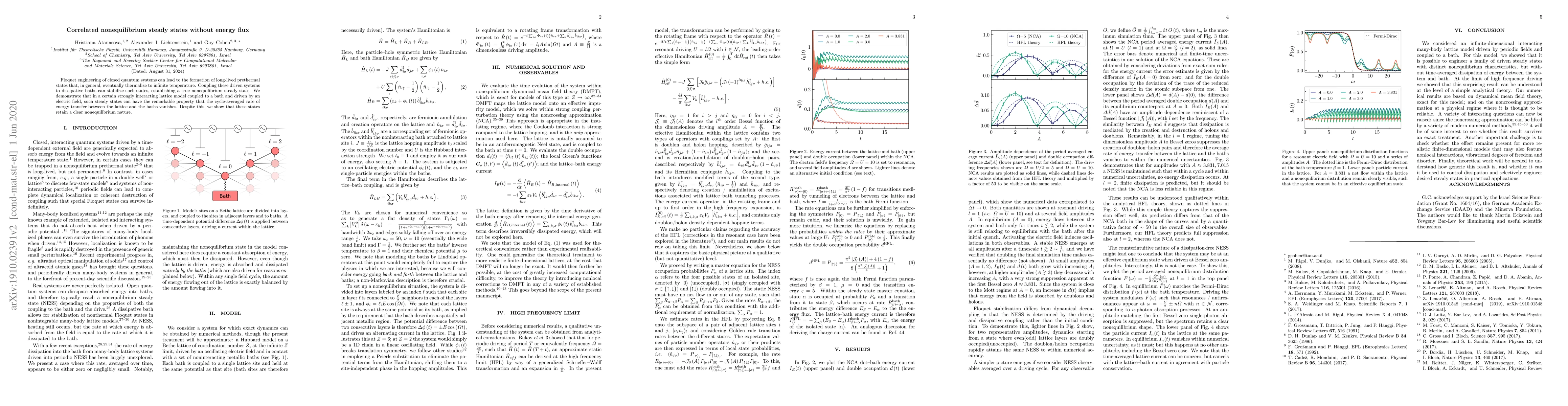 This study reveals that strongly interacting lattice models driven by an electric field and coupled to dissipative baths can establish nonequilibrium steady states with zero net energy flux, yet still exhibit distinct nonequilibrium characteristics. Such states challenge conventional notions of energy flow in nonequilibrium systems.
