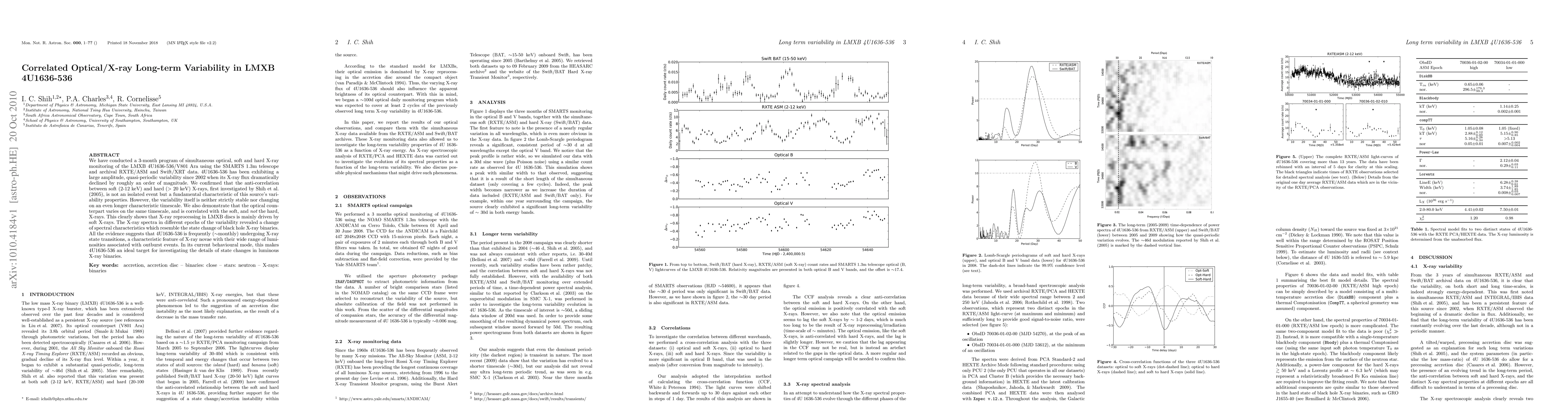 The LMXB 4U1636-536 exhibits large amplitude variability with X-ray flux decline, which is correlated with optical variations and primarily driven by soft X-rays. It frequently undergoes state transitions similar to X-ray novae, making it an ideal target for studying luminous X-ray binary behavior.