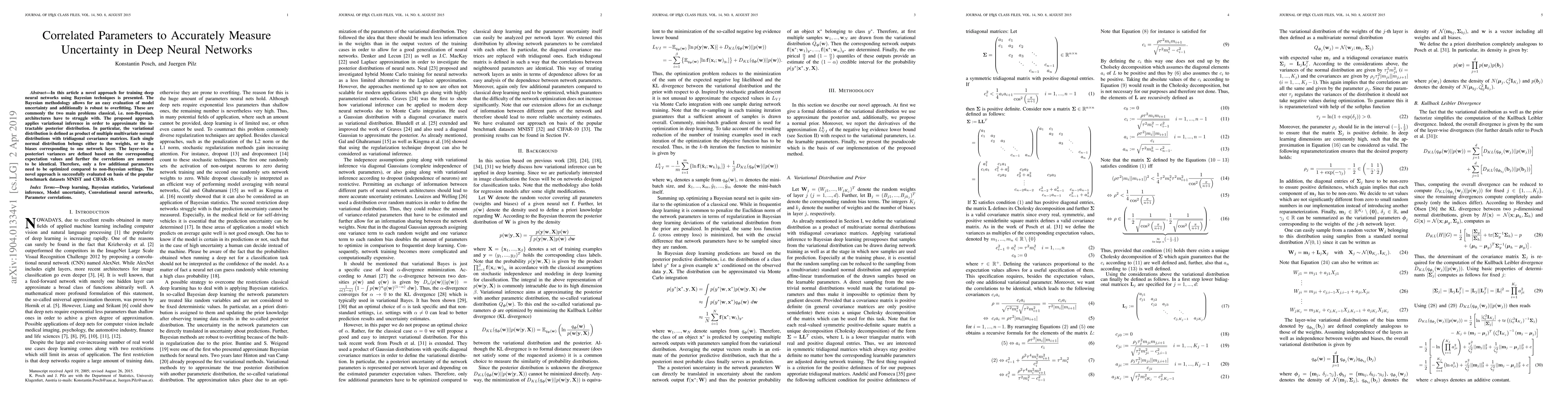 This paper introduces a Bayesian approach to train deep neural networks using variational inference, enabling effective evaluation of model uncertainty and robustness against overfitting. The method optimizes only a few additional parameters by defining layer-wise posterior variances and correlations, and is validated on MNIST and CIFAR-10 datasets.