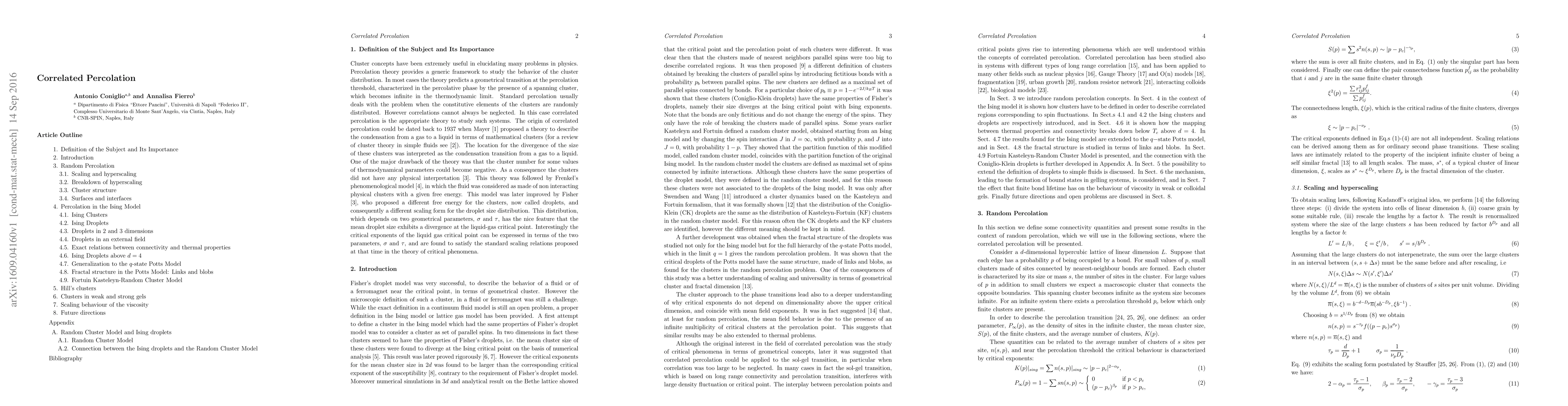 Cluster concepts have been extremely useful in elucidating many problems in physics. Percolation theory provides a generic framework to study the behavior of the cluster distribution. In most cases the theory predicts a geometrical transition at the percolation threshold, characterized in the percolative phase by the presence of a spanning cluster, which becomes infinite in the thermodynamic limit. Standard percolation usually deals with the problem when the constitutive elements of the clusters are randomly distributed. However correlations cannot always be neglected. In this case correlated percolation is the appropriate theory to study such systems. The origin of correlated percolation could be dated back to 1937 when Mayer [1] proposed a theory to describe the condensation from a gas to a liquid in terms of mathematical clusters (for a review of cluster theory in simple fluids see [2]). The location for the divergence of the size of these clusters was interpreted as the condensation transition from a gas to a liquid. One of the major drawback of the theory was that the cluster number for some values of thermodynamic parameters could become negative. As a consequence the clusters did not have any physical interpretation [3]. This theory was followed by Frenkel's phenomenological model [4], in which the fluid was considered as made of non interacting physical clusters with a given free energy. This model was later improved by Fisher [3], who proposed a different free energy for the clusters, now called droplets, and consequently a different scaling form for the droplet size distribution. This distribution, which depends on two geometrical parameters, has the nice feature that the mean droplet size exhibits a divergence at the liquid-gas critical point.