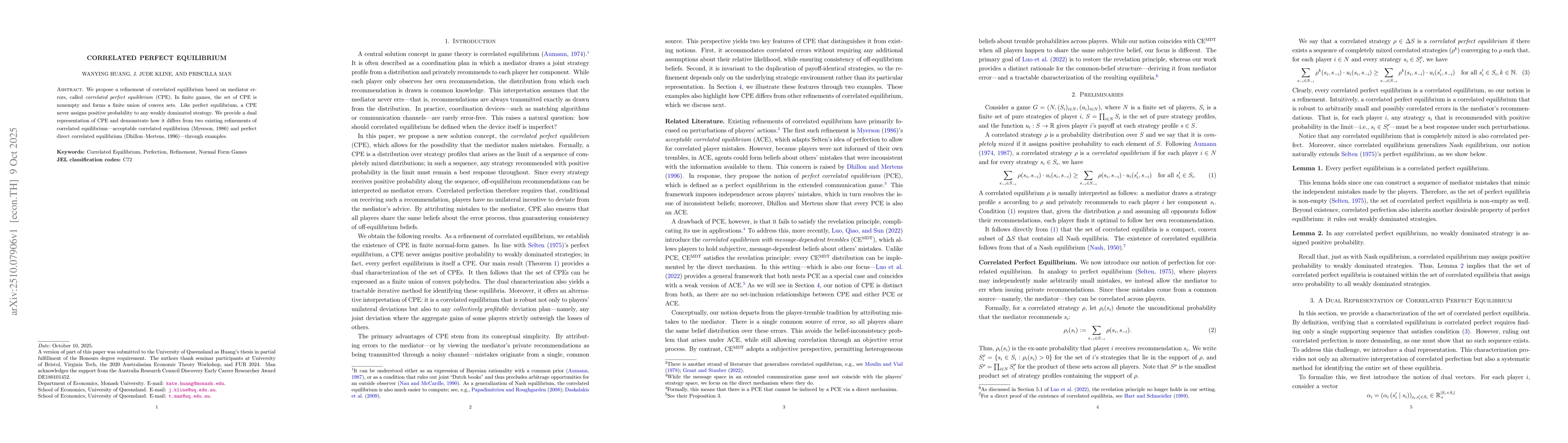 Developed a mathematical characterization of perfect correlated equilibria using trembling-hand perfection and provided a systematic approach to construct supporting sequences for these equilibria.