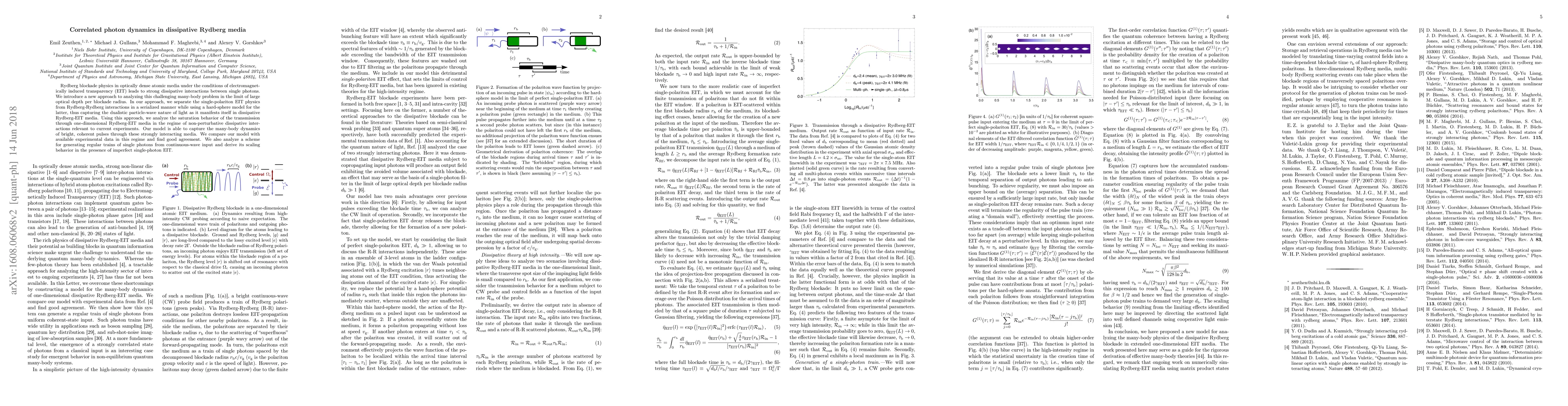 This paper introduces a new analytical approach to study correlated photon dynamics in Rydberg media under electromagnetically induced transparency, separating EIT physics from Rydberg interactions and using a hard-sphere model. The model accurately captures the many-body dynamics of coherent pulses and agrees well with experimental data, also proposing a scheme for generating single-photon trains.