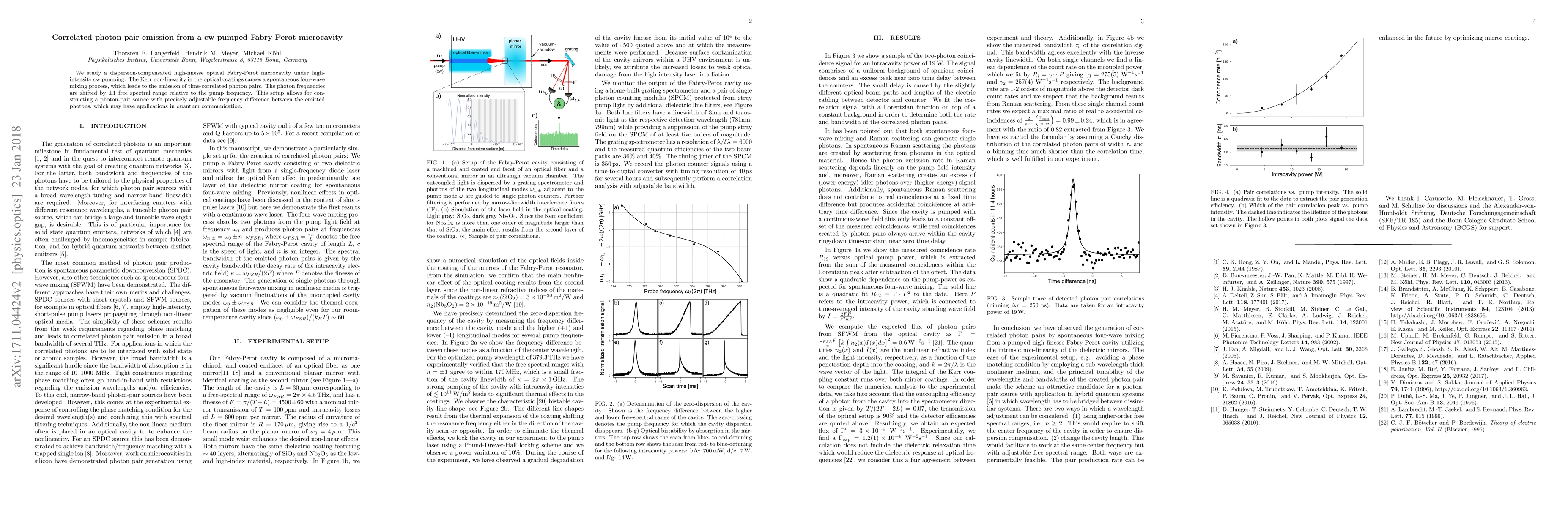 This research investigates a high-finesse optical microcavity pumped continuously, where Kerr non-linearity induces spontaneous four-wave mixing, resulting in correlated photon-pair emission shifted by ±1 free spectral range. The tunable frequency difference may enable applications in quantum communication.