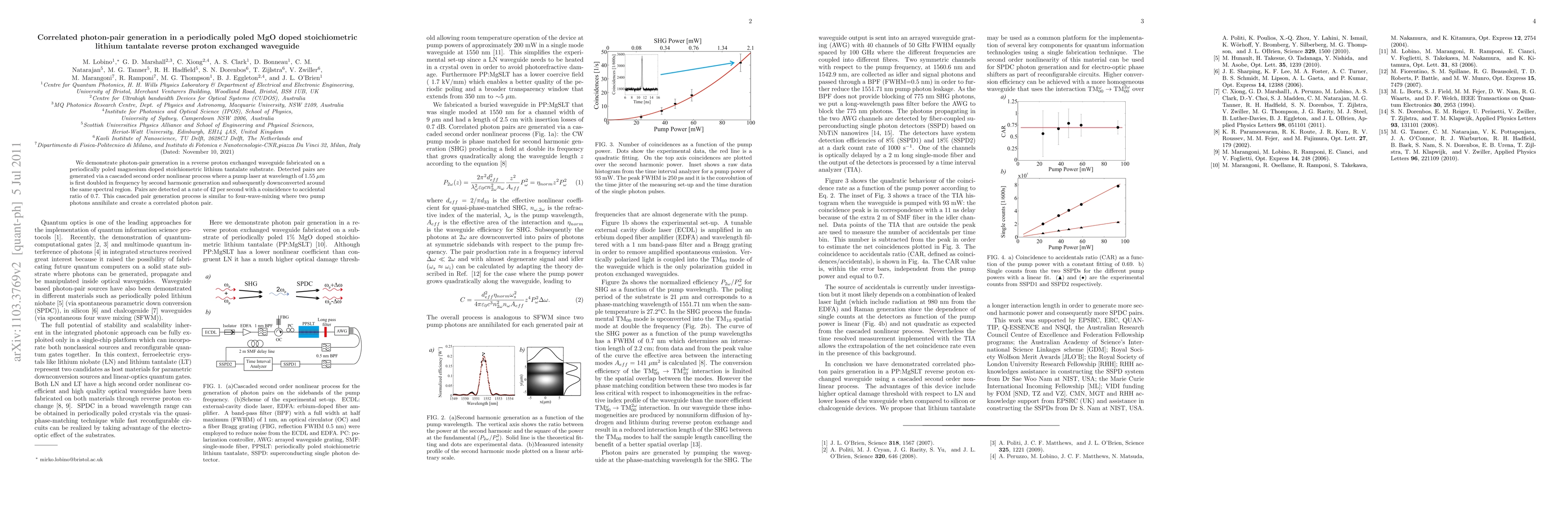 This paper demonstrates photon-pair generation in a reverse proton exchanged waveguide on a periodically poled MgO-doped lithium tantalate substrate, utilizing a cascaded second-order nonlinear process. The pump laser at 1.55 μm is first frequency-doubled and then downconverted, resulting in correlated photon pairs detected at a rate of 42 per second with a favorable coincidence-to-accidental ratio of 0.7.