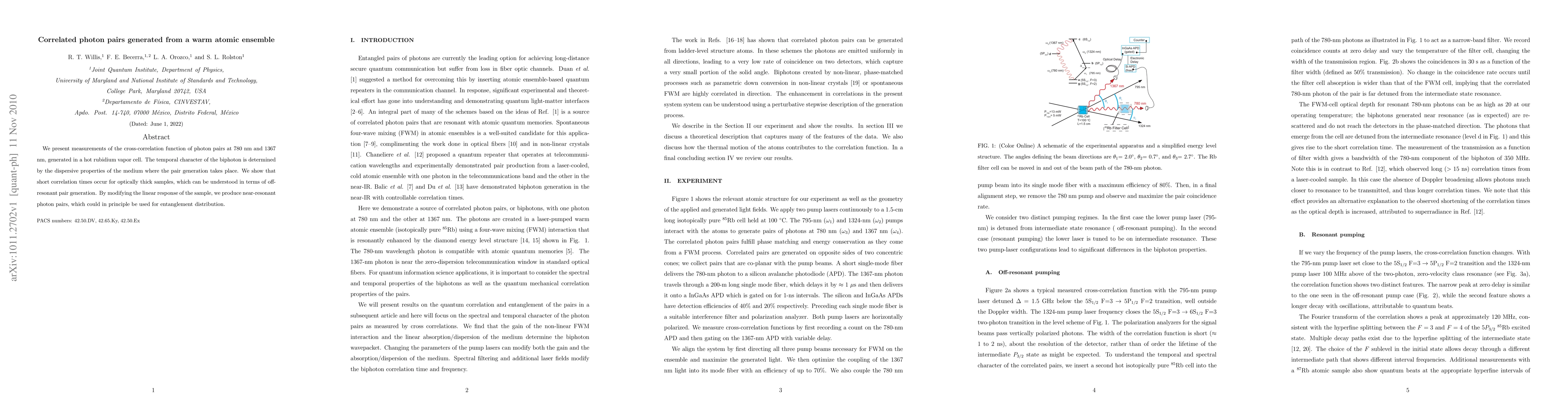 We present measurements of the cross-correlation function of photon pairs at 780 nm and 1367 nm, generated in a hot rubidium vapor cell. The temporal character of the biphoton is determined by the dispersive properties of the medium where the pair generation takes place. We show that short correlation times occur for optically thick samples, which can be understood in terms of off-resonant pair generation. By modifying the linear response of the sample, we produce near-resonant photon pairs, which could in principle be used for entanglement distribution.
