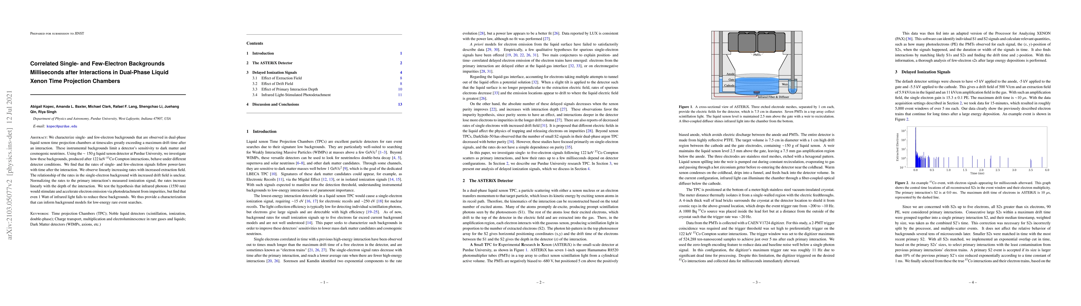 This study characterizes single- and few-electron backgrounds in dual-phase liquid xenon detectors, observing power-law behavior in their rates post-interaction. Despite testing infrared light to reduce these backgrounds, no significant reduction was found, providing valuable data for low-energy rare event searches.
