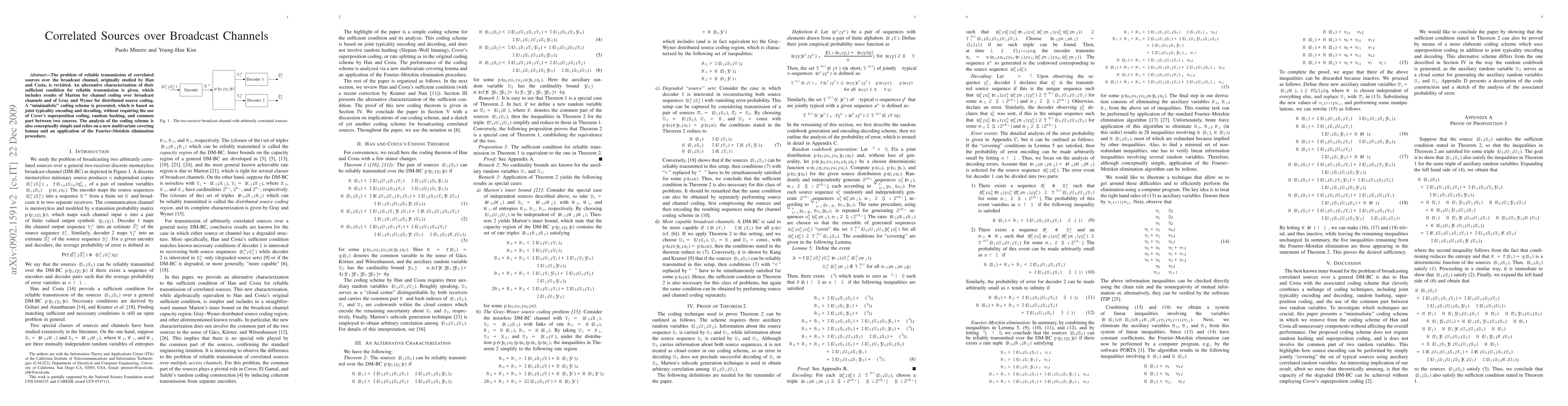 Researchers present a new coding scheme for transmitting correlated sources over broadcast channels that is simpler than existing methods and relies on joint typicality encoding and decoding. This approach provides a more efficient solution for reliable transmission of correlated data.