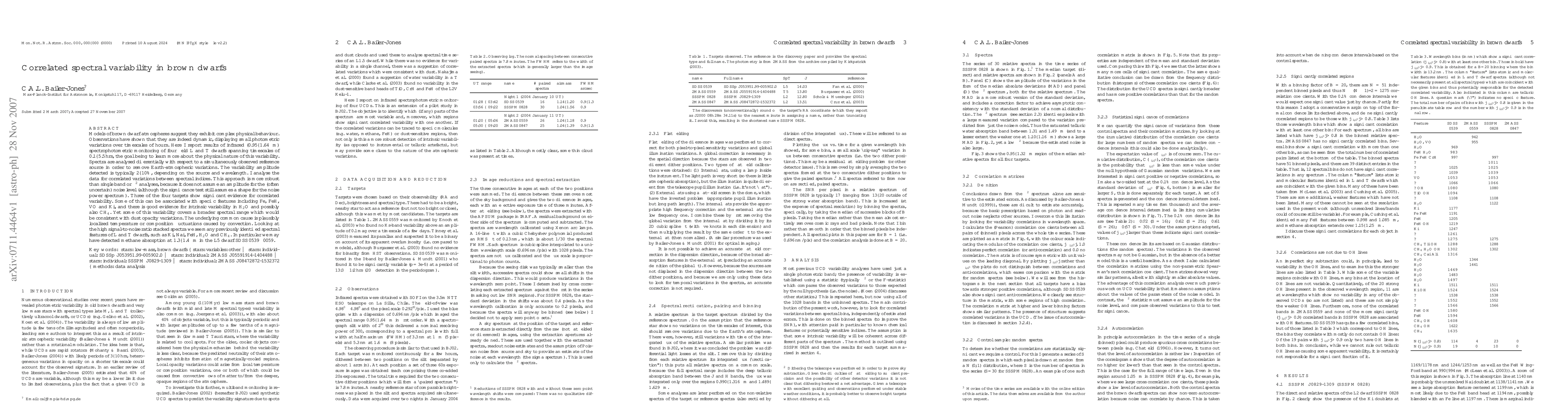 Brown dwarfs exhibit small photometric variations over hours, with correlated spectral variability detected in three of four targets, possibly due to convection-induced temperature or composition fluctuations.