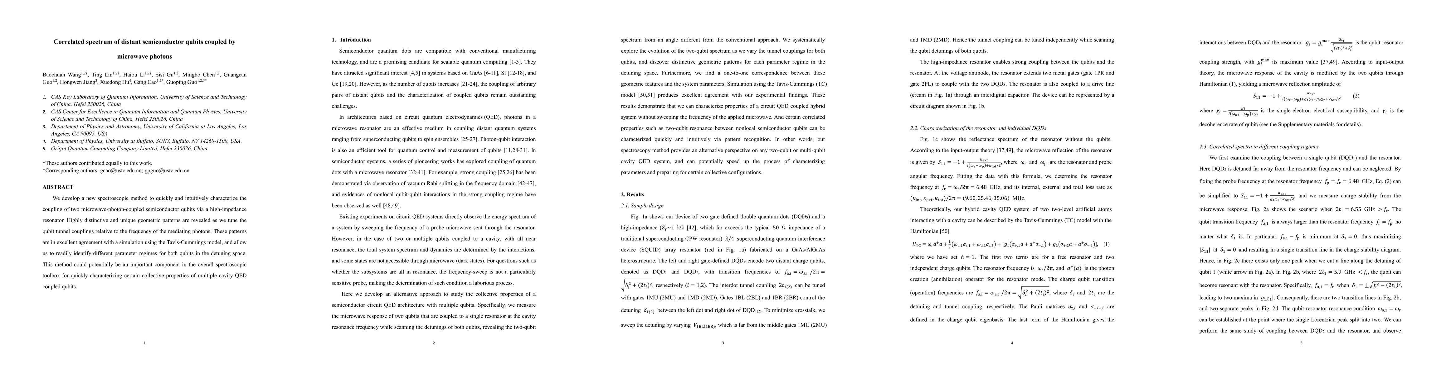 This paper introduces a novel spectroscopic technique to characterize the coupling between distant semiconductor qubits mediated by microwave photons, revealing unique geometric patterns that align well with theoretical predictions and simulations. This method may serve as a valuable tool for analyzing collective properties in cavity quantum electrodynamics systems.