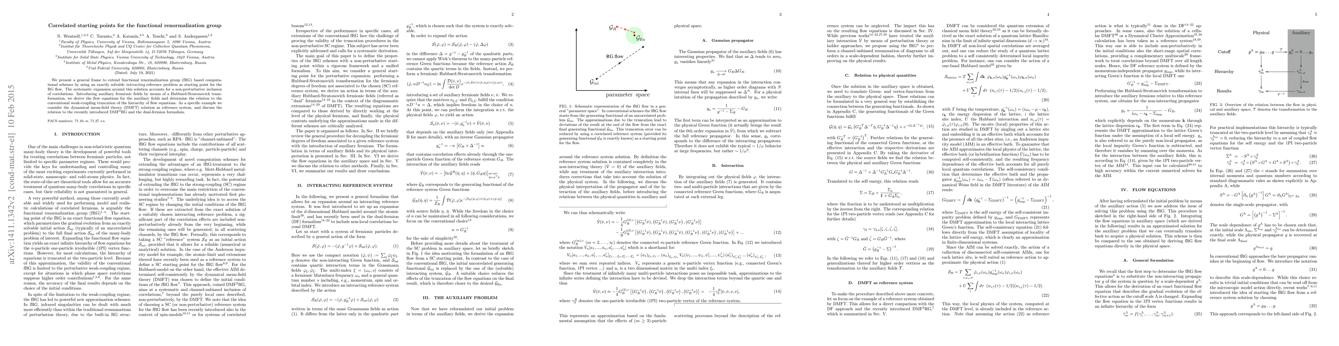 This paper proposes a framework to extend functional renormalization group (fRG) methods by using an exactly solvable reference problem, allowing for non-perturbative inclusion of correlations. It introduces auxiliary fermionic fields and derives flow equations, relating these to the weak-coupling truncation and discussing applications to DMFT and DMF$^2$RG.