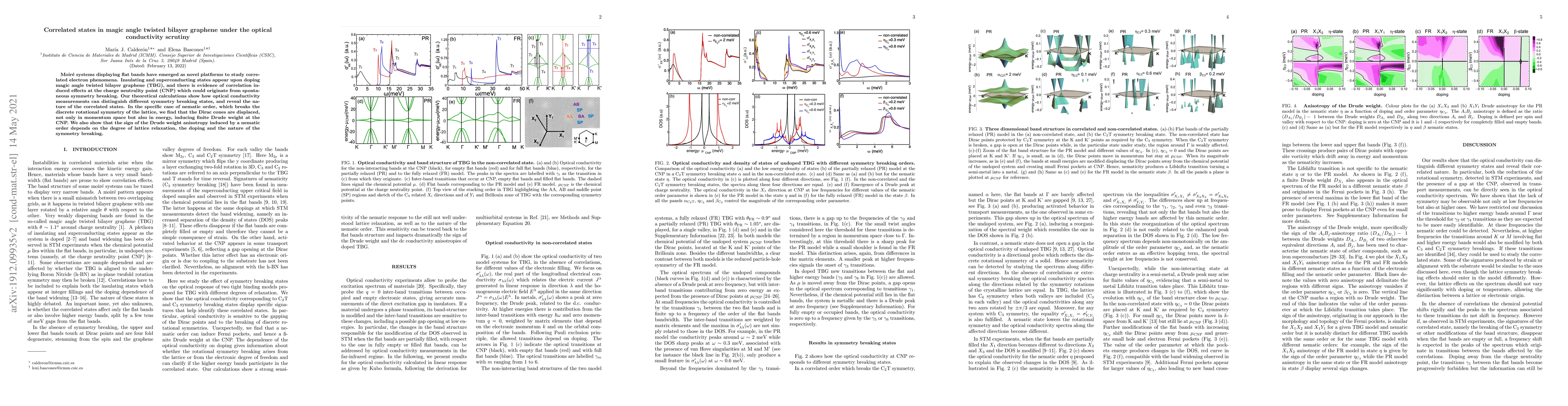 Theoretical calculations show how optical conductivity measurements can distinguish different symmetry breaking states in magic angle twisted bilayer graphene, revealing the nature of correlated states.