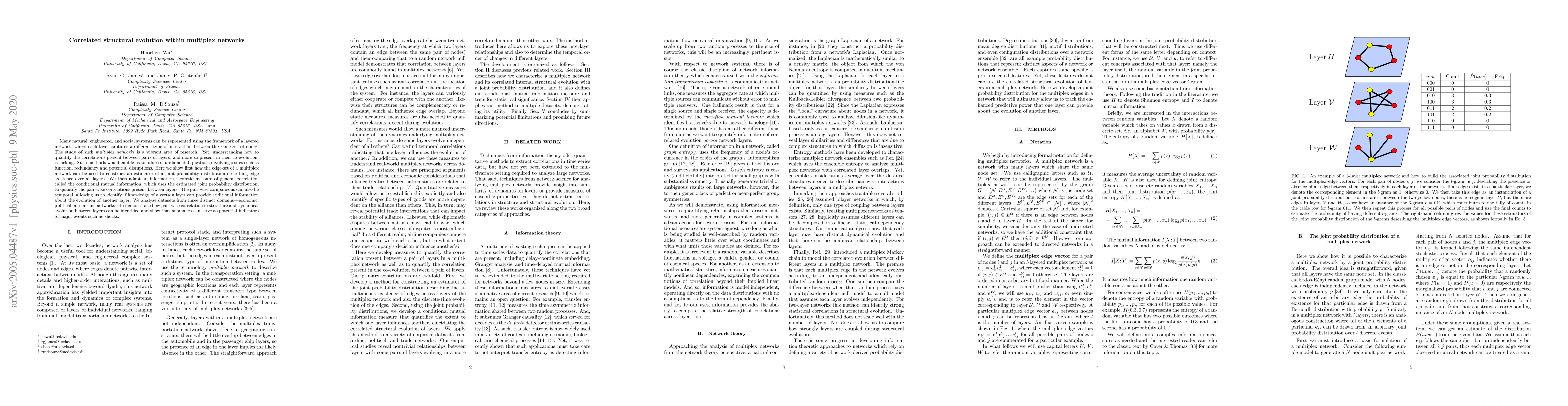 Many natural, engineered, and social systems can be represented using the framework of a layered network, where each layer captures a different type of interaction between the same set of nodes. The study of such multiplex networks is a vibrant area of research. Yet, understanding how to quantify the correlations present between pairs of layers, and more so present in their co-evolution, is lacking. Such methods would enable us to address fundamental questions involving issues such as function, redundancy and potential disruptions. Here we show first how the edge-set of a multiplex network can be used to construct an estimator of a joint probability distribution describing edge existence over all layers. We then adapt an information-theoretic measure of general correlation called the conditional mutual information, which uses the estimated joint probability distribution, to quantify the pairwise correlations present between layers. The pairwise comparisons can also be temporal, allowing us to identify if knowledge of a certain layer can provide additional information about the evolution of another layer. We analyze datasets from three distinct domains---economic, political, and airline networks---to demonstrate how pairwise correlation in structure and dynamical evolution between layers can be identified and show that anomalies can serve as potential indicators of major events such as shocks.