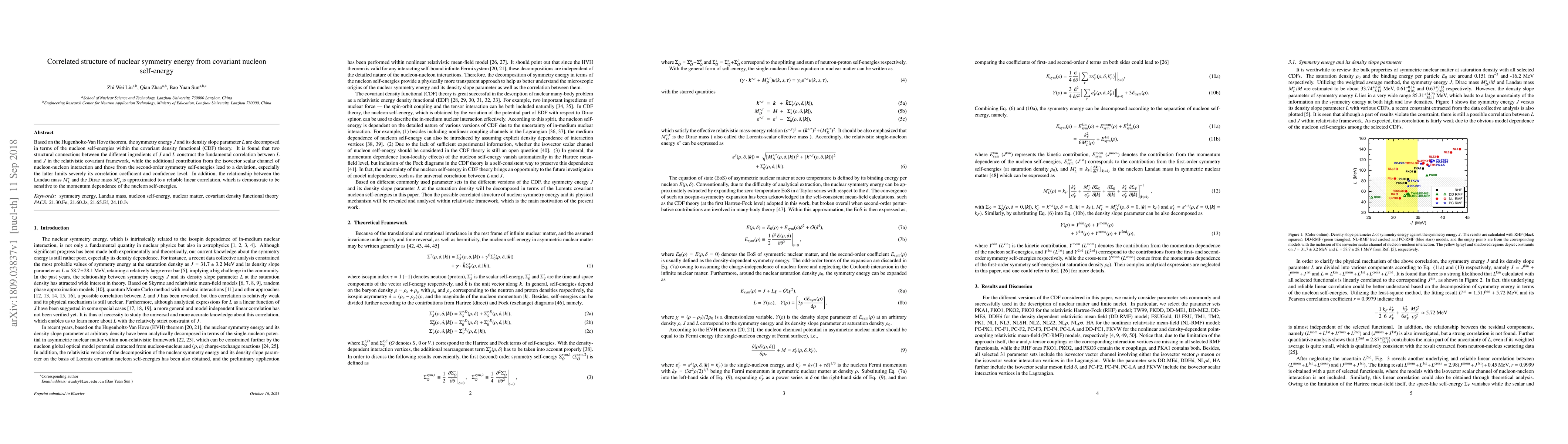 Based on the Hugenholtz-Van Hove theorem, the symmetry energy $J$ and its density slope parameter $L$ are decomposed in terms of the nucleon self-energies within the covariant density functional (CDF) theory. It is found that two structural connections between the different ingredients of $J$ and $L$ construct the fundamental correlation between $L$ and $J$ in the relativistic covariant framework, while the additional contribution from the isovector scalar channel of nucleon-nucleon interaction and those from the second-order symmetry self-energies lead to a deviation, especially the latter limits severely its correlation coefficient and confidence level. In addition, the relationship between the Landau mass $M_L^*$ and the Dirac mass $M_D^*$ is approximated to a reliable linear correlation, which is demonstrate to be sensitive to the momentum dependence of the nucleon self-energies.