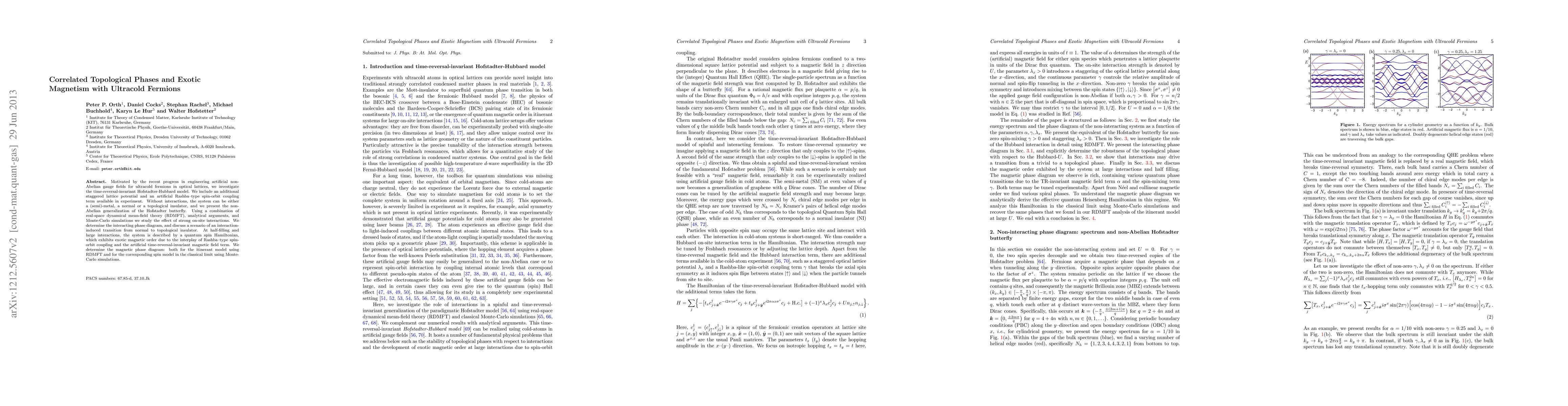Motivated by the recent progress in engineering artificial non-Abelian gauge fields for ultracold fermions in optical lattices, we investigate the time-reversal-invariant Hofstadter-Hubbard model. We include an additional staggered lattice potential and an artificial Rashba--type spin-orbit coupling term available in experiment. Without interactions, the system can be either a (semi)-metal, a normal or a topological insulator, and we present the non-Abelian generalization of the Hofstadter butterfly. Using a combination of real-space dynamical mean-field theory (RDMFT), analytical arguments, and Monte-Carlo simulations we study the effect of strong on-site interactions. We determine the interacting phase diagram, and discuss a scenario of an interaction-induced transition from normal to topological insulator. At half-filling and large interactions, the system is described by a quantum spin Hamiltonian, which exhibits exotic magnetic order due to the interplay of Rashba--type spin-orbit coupling and the artificial time-reversal-invariant magnetic field term. We determine the magnetic phase diagram: both for the itinerant model using RDMFT and for the corresponding spin model in the classical limit using Monte-Carlo simulations.