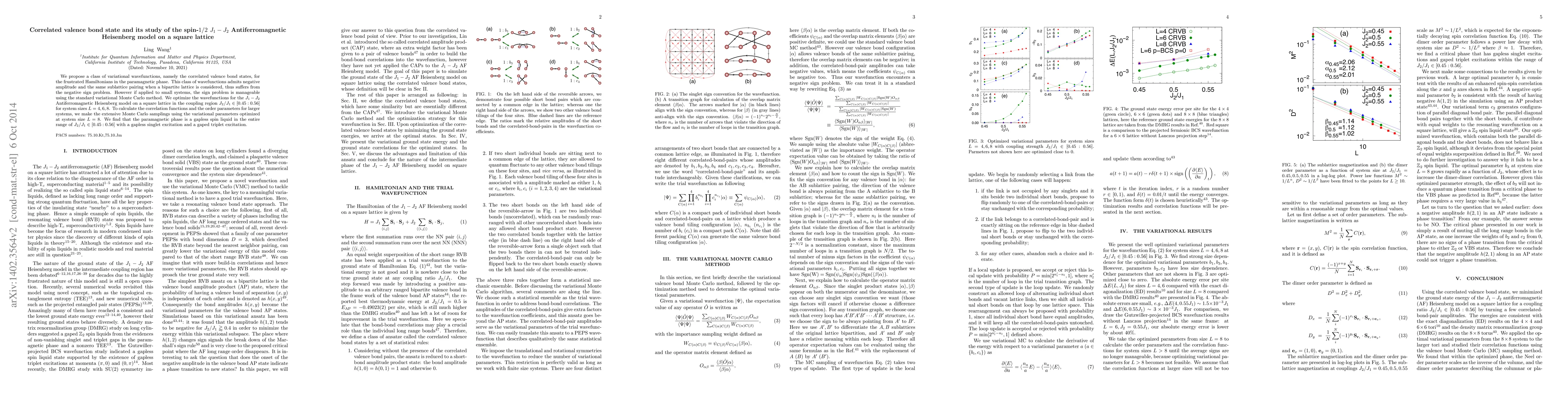 This paper proposes correlated valence bond states as variational wave functions for the J1-J2 antiferromagnetic Heisenberg model on a square lattice, finding a gap-less spin liquid phase in the paramagnetic phase across the studied coupling range. The study uses variational Monte Carlo methods to optimize wave functions and calculate correlation functions.