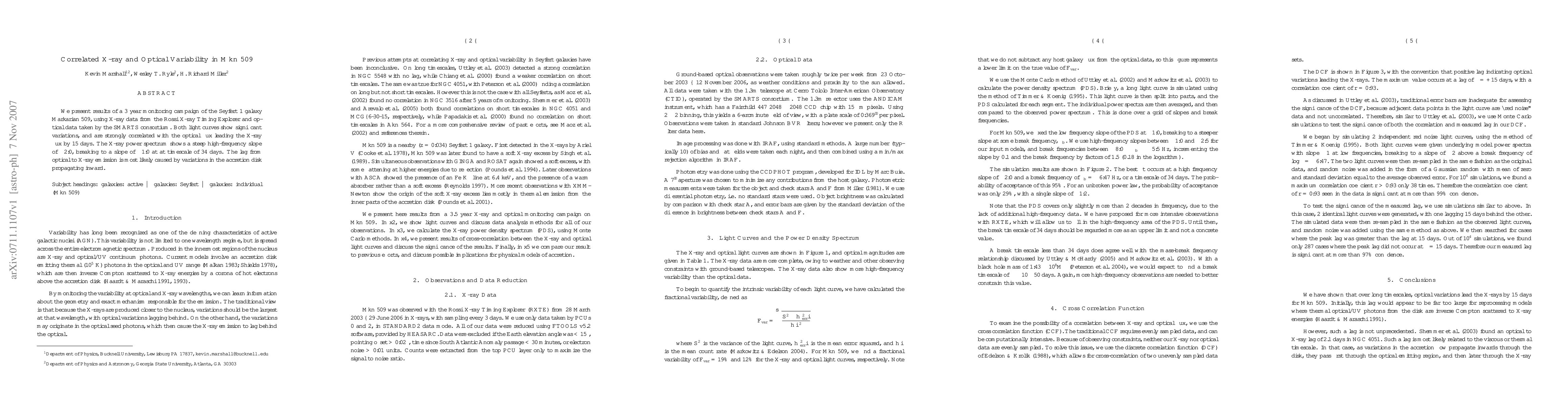 The Mkn 509 galaxy exhibits strong correlations between X-ray and optical variability, with a lag of up to 15 days in X-ray emission following changes in optical flux, suggesting accretion disk propagation.