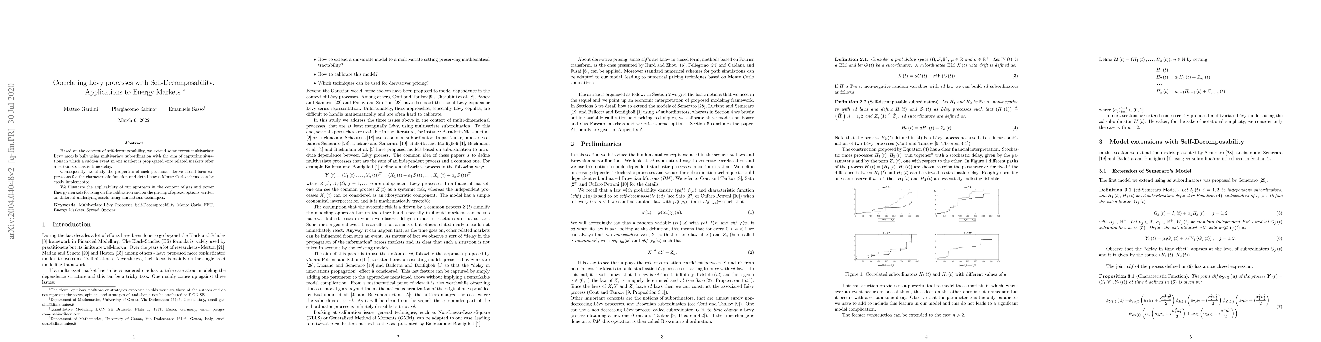 Based on the concept of self-decomposability, we extend some recent multivariate L\'evy models built using multivariate subordination with the aim of capturing situations in which a sudden event in one market is propagated onto related markets after a certain stochastic time delay. Consequently, we study the properties of such processes, derive closed form expressions for the characteristic function and detail how a Monte Carlo scheme can be easily implemented. We illustrate the applicability of our approach in the context of gas and power Energy markets focusing on the calibration and on the pricing of spread options written on different underlying assets using simulations techniques.