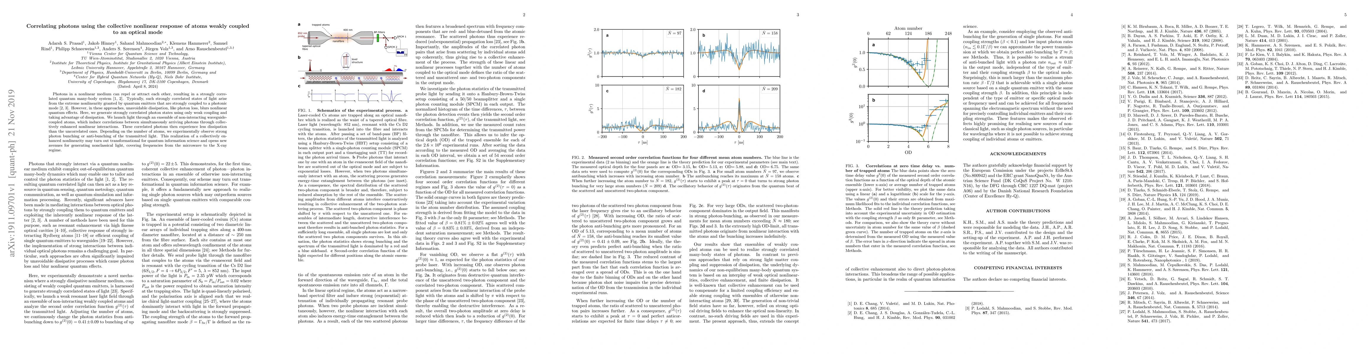 This paper demonstrates the generation of strongly correlated photon states through the collective nonlinear response of weakly coupled atoms in a waveguide, which induces photon correlations without significant dissipation. The approach shows potential for transformative applications in quantum information science and nonclassical light generation across various frequencies.