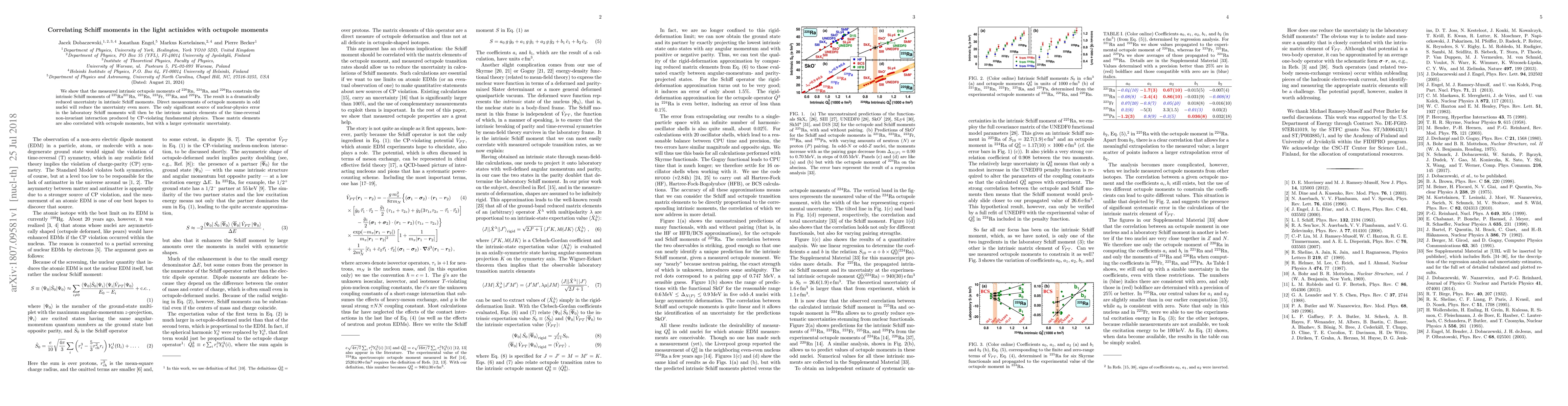 This paper demonstrates a correlation between measured intrinsic octupole moments in light actinides and intrinsic Schiff moments, significantly reducing uncertainty in the latter. Direct measurements of octupole moments in odd nuclei could further diminish uncertainties, leaving only CP-violating fundamental physics as a significant source of error.