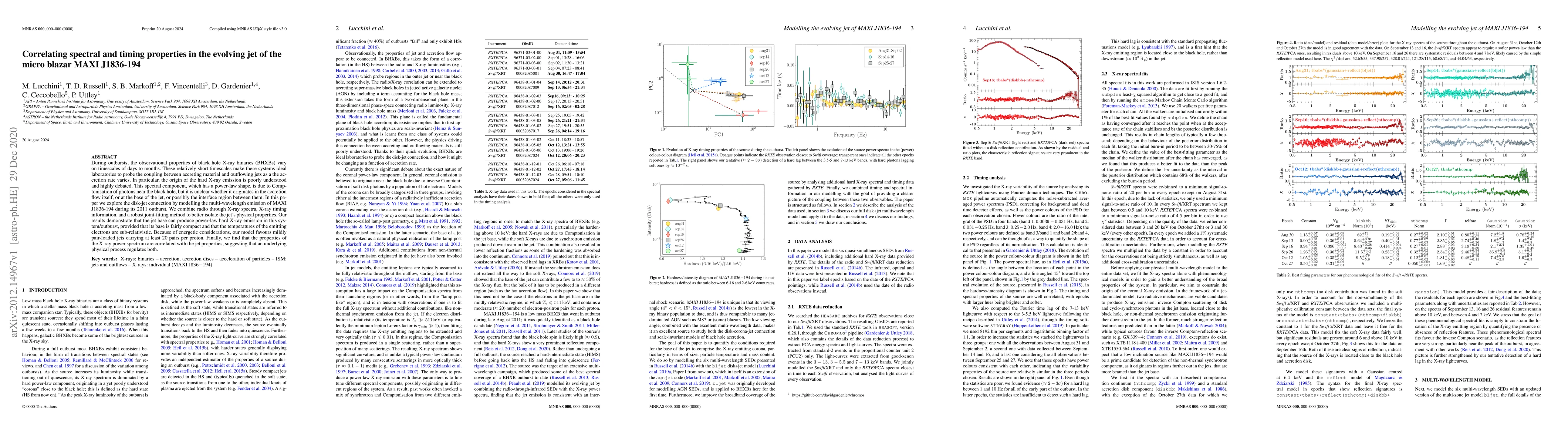 During outbursts, the observational properties of black hole X-ray binaries (BHXBs) vary on timescales of days to months. These relatively short timescales make these systems ideal laboratories to probe the coupling between accreting material and outflowing jets as a the accretion rate varies. In particular, the origin of the hard X-ray emission is poorly understood and highly debated. This spectral component, which has a power-law shape, is due to Comptonisation of photons near the black hole, but it is unclear whether it originates in the accretion flow itself, or at the base of the jet, or possibly the interface region between them. In this paper we explore the disk-jet connection by modelling the multi-wavelength emission of MAXI J1836-194 during its 2011 outburst. We combine radio through X-ray spectra, X-ray timing information, and a robust joint-fitting method to better isolate the jet's physical properties. Our results demonstrate that the jet base can produce power-law hard X-ray emission in this system/outburst, provided that its base is fairly compact and that the temperatures of the emitting electrons are sub-relativistic. Because of energetic considerations, our model favours mildly pair-loaded jets carrying at least 20 pairs per proton. Finally, we find that the properties of the X-ray power spectrum are correlated with the jet properties, suggesting that an underlying physical process regulates both.