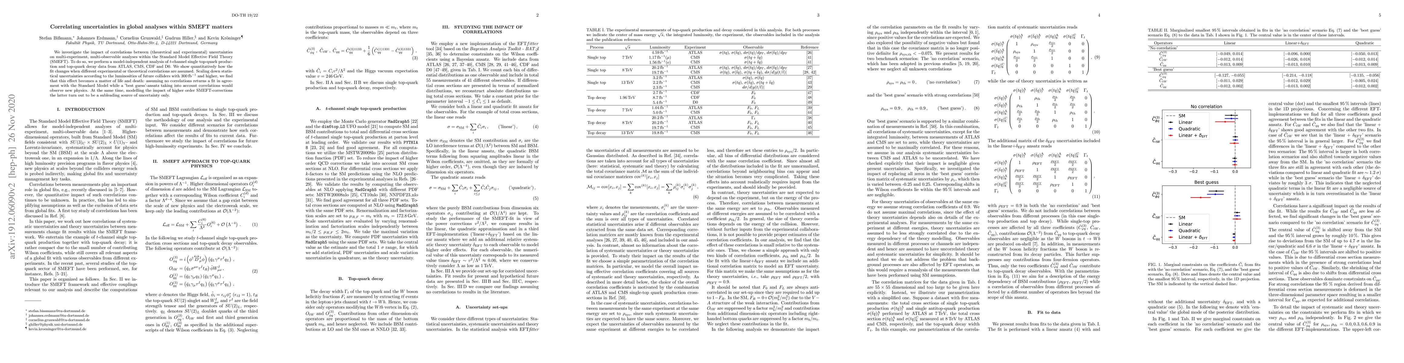 We investigate the impact of correlations between (theoretical and experimental) uncertainties on multi-experiment, multi-observable analyses within the Standard Model Effective Field Theory (SMEFT). To do so, we perform a model-independent analysis of $t$-channel single top-quark production and top-quark decay data from ATLAS, CMS, CDF and D0. We show quantitatively how the fit changes when different experimental or theoretical correlations are assumed. Scaling down statistical uncertainties according to the luminosities of future colliders with $300 \, {\rm fb}^{-1}$ and higher, we find that this effect becomes a matter of life and death: assuming no correlations returns a fit in agreement with the Standard Model while a 'best guess'-ansatz taking into account correlations would observe new physics. At the same time, modelling the impact of higher order SMEFT-corrections the latter turn out to be a subleading source of uncertainty only.