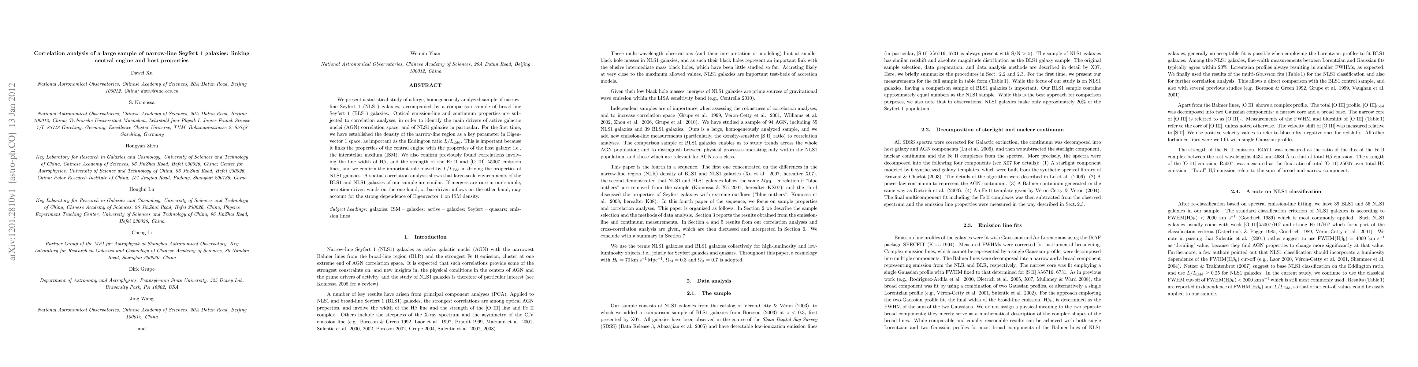 We present a statistical study of a large, homogeneously analyzed sample of narrow-line Seyfert 1 (NLS1) galaxies, accompanied by a comparison sample of broad-line Seyfert 1 (BLS1) galaxies. Optical emission-line and continuum properties are subjected to correlation analyses, in order to identify the main drivers of active galactic nuclei (AGN) correlation space, and of NLS1 galaxies in particular. For the first time, we have established the density of the narrow-line region as a key parameter in Eigenvector 1 space, as important as the Eddington ratio L/Ledd. This is important because it links the properties of the central engine with the properties of the host galaxy; i.e., the interstellar medium (ISM). We also confirm previously found correlations involving the line width of Hbeta, and the strength of the FeII and [OIII]5007 emission lines, and we confirm the important role played by L/Ledd in driving the properties of NLS1 galaxies. A spatial correlation analysis shows that large-scale environments of the BLS1 and NLS1 galaxies of our sample are similar. If mergers are rare in our sample, accretion-driven winds on the one hand, or bar-driven inflows on the other hand, may account for the strong dependence of Eigenvector 1 on ISM density.