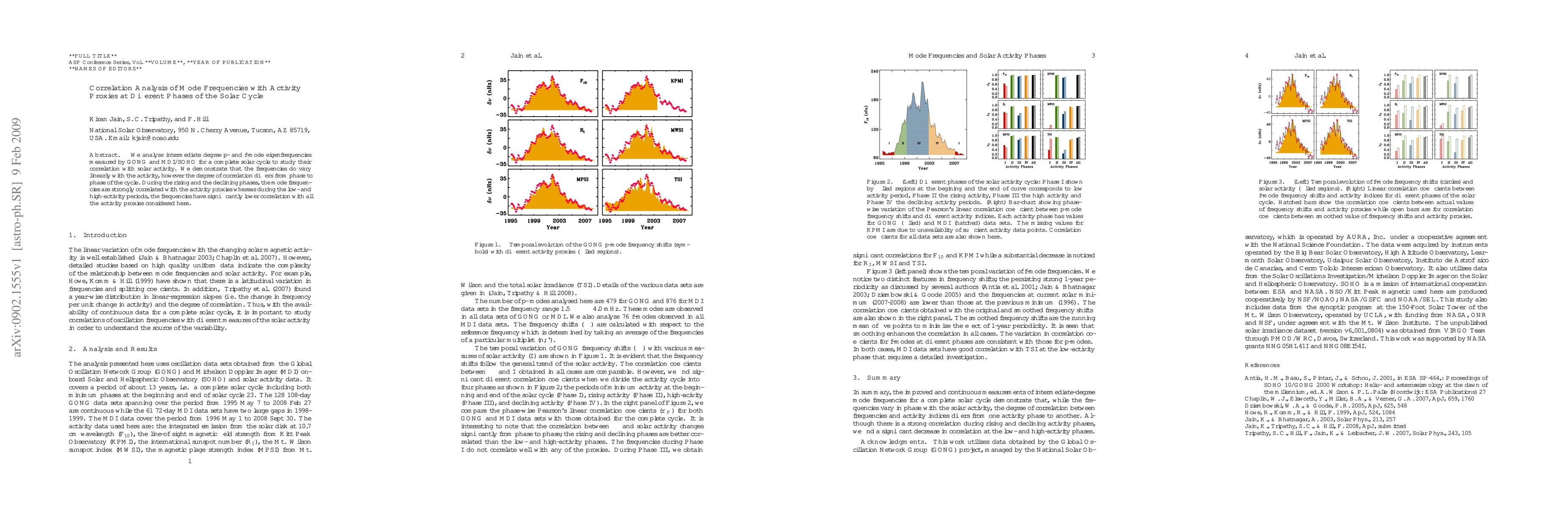 This study investigates the correlation between solar mode frequencies and solar activity proxies over a complete solar cycle, revealing that while frequencies vary linearly with activity, the degree of correlation fluctuates, being stronger during the rising and declining phases and weaker during low- and high-activity periods.