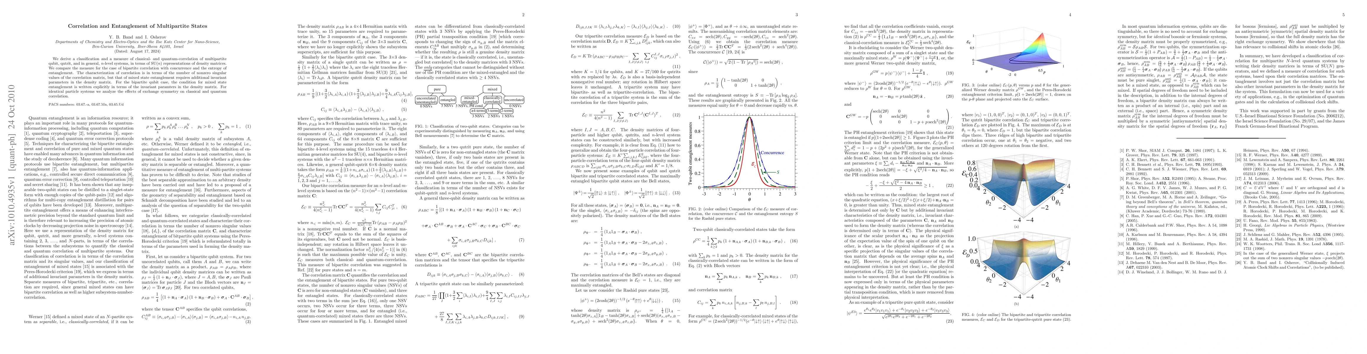 This paper classifies and measures classical and quantum correlations in multipartite systems using SU($n$) representations, comparing these measures with concurrence and entanglement entropy. It also explicitly details the conditions for mixed state entanglement in bipartite qubits and examines the impact of exchange symmetry on correlations in identical particle systems.