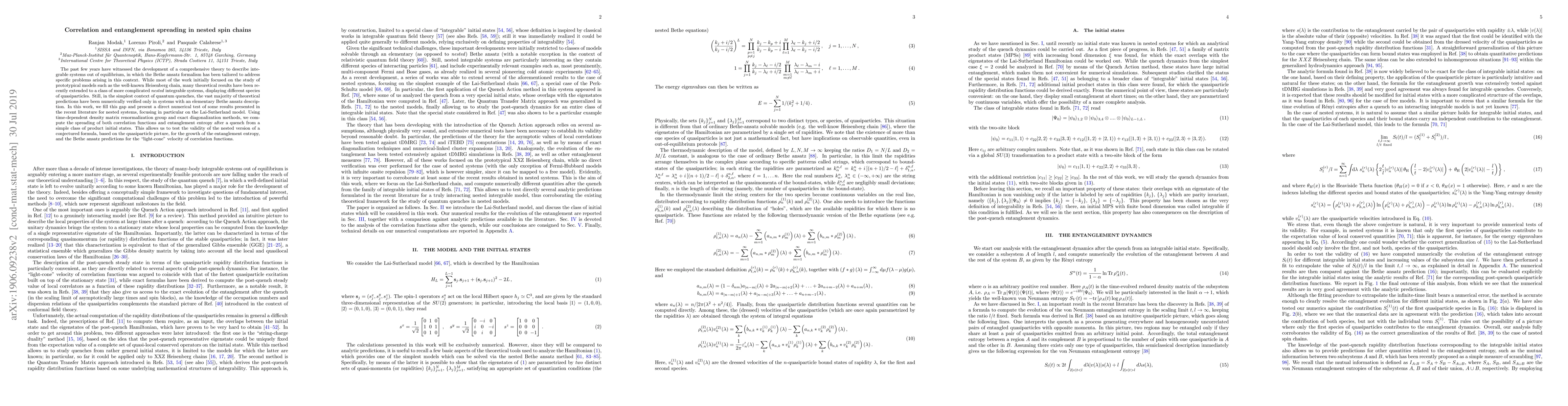 This paper tests the validity of theoretical predictions for nested spin chains after a quantum quench using numerical methods, focusing on correlation functions and entanglement entropy growth.