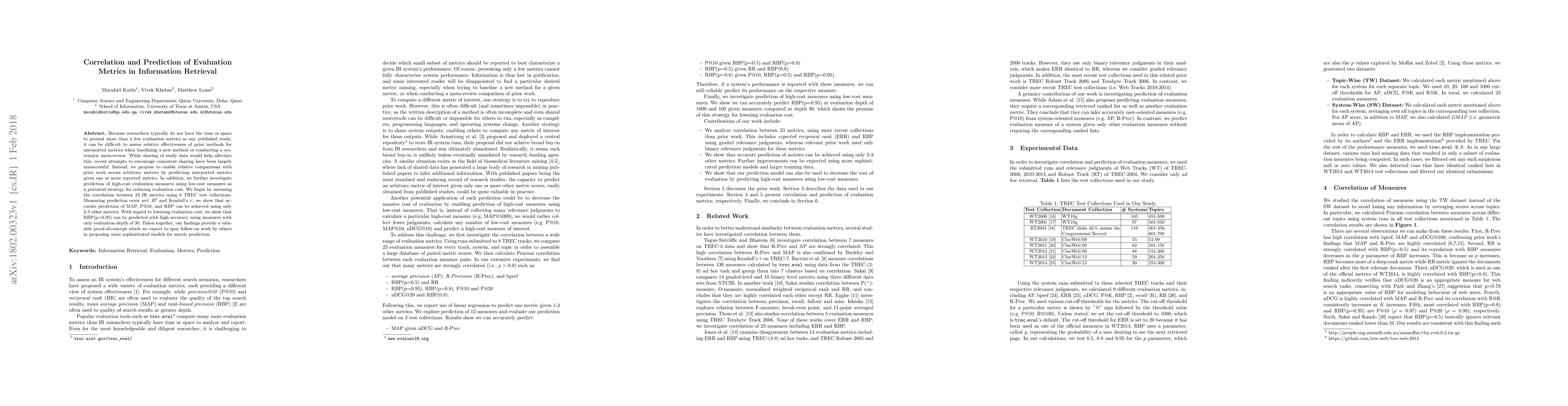 This paper explores the correlation and prediction of evaluation metrics in information retrieval to enable relative comparisons across unreported metrics. It demonstrates that accurate predictions of high-cost metrics can be made using low-cost ones, suggesting a strategy to reduce evaluation costs.