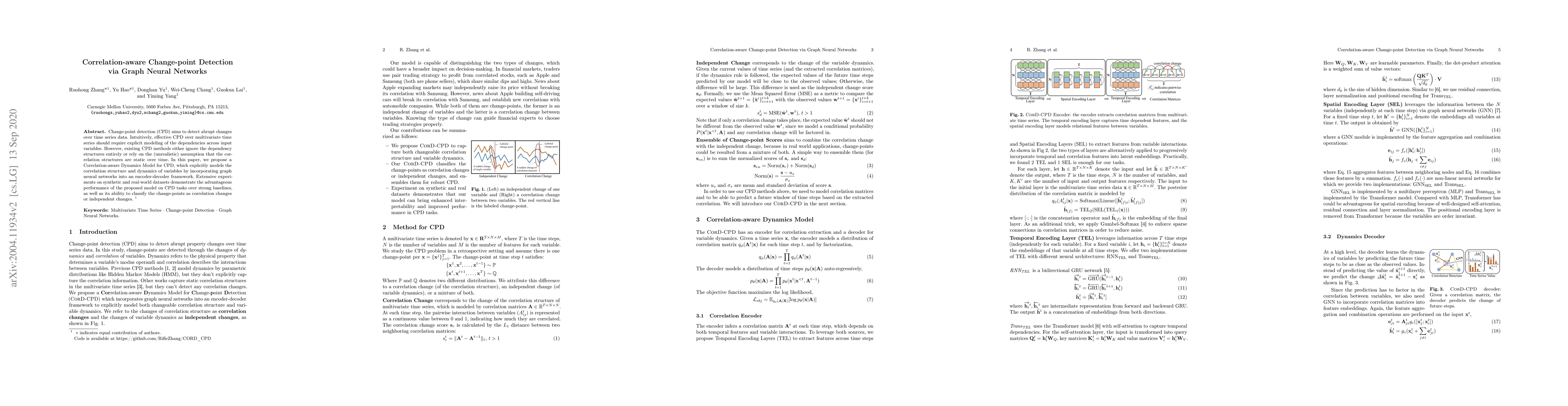 This paper proposes a Correlation-aware Dynamics Model for change-point detection using graph neural networks to explicitly model the correlation structure and dynamics of multivariate time series. Experiments show superior performance over baselines and the ability to classify change-points as correlation or independent changes.