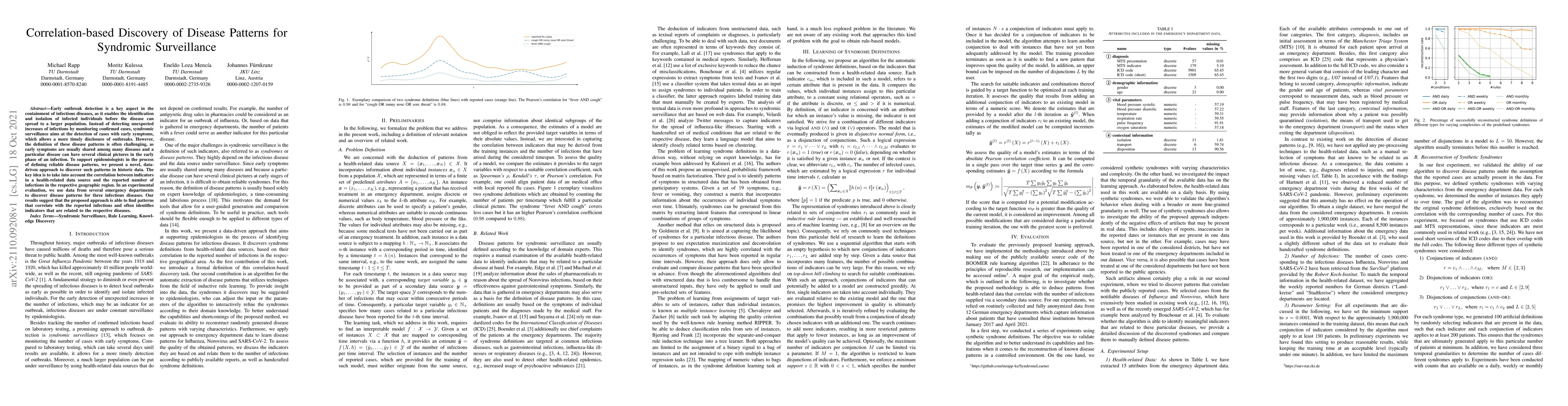 A novel data-driven approach is presented to discover disease patterns in historic health data, correlating indicators with reported infections. The method identifies reliable patterns that often relate to specific diseases, aiding epidemiologists in early outbreak detection.