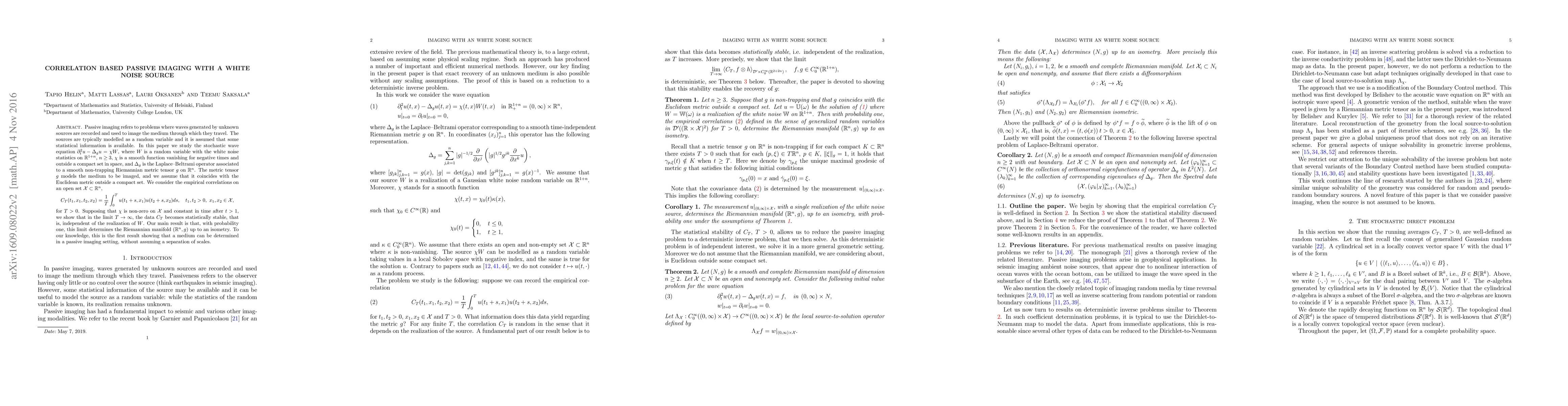 Researchers develop a method for passive imaging using white noise sources, showing that data from these sources can accurately determine the underlying Riemannian manifold up to an isometry.