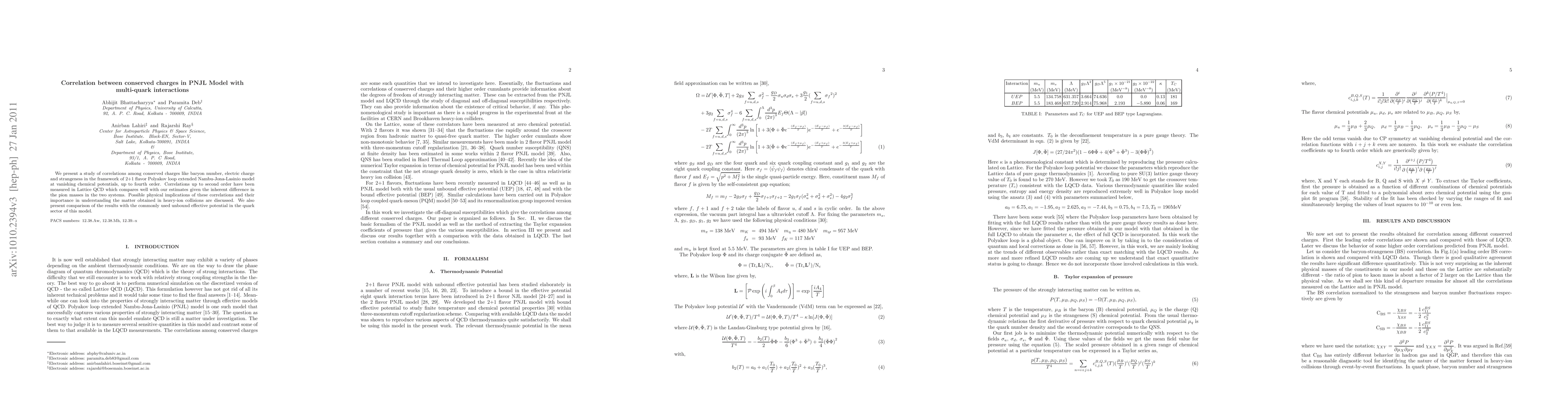We present a study of correlations among conserved charges like baryon number, electric charge and strangeness in the framework of 2+1 flavor Polyakov loop extended Nambu-Jona-Lasinio model at vanishing chemical potentials, up to fourth order. Correlations up to second order have been measured in Lattice QCD which compares well with our estimates given the inherent difference in the pion masses in the two systems. Possible physical implications of these correlations and their importance in understanding the matter obtained in heavy-ion collisions are discussed. We also present comparison of the results with the commonly used unbound effective potential in the quark sector of this model.
