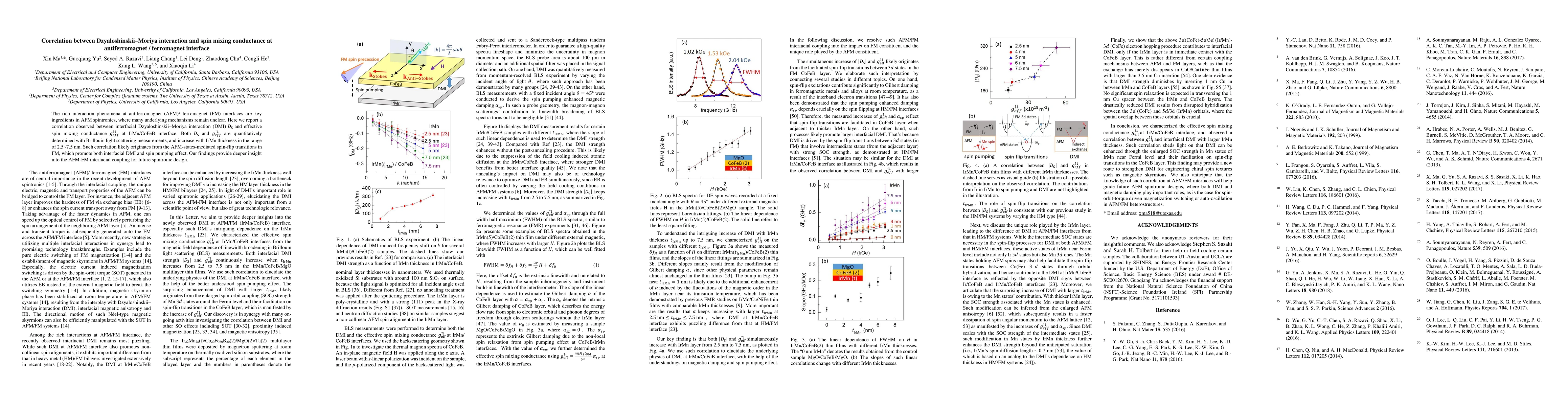 This paper investigates the correlation between Dzyaloshinskii-Moriya interaction (DMI) and spin mixing conductance at IrMn/CoFeB interfaces, revealing that both increase with IrMn thickness. The findings suggest that AFM-states-mediated spin-flip transitions in the ferromagnet promote both DMI and spin pumping, offering insights for AFM spintronics development.