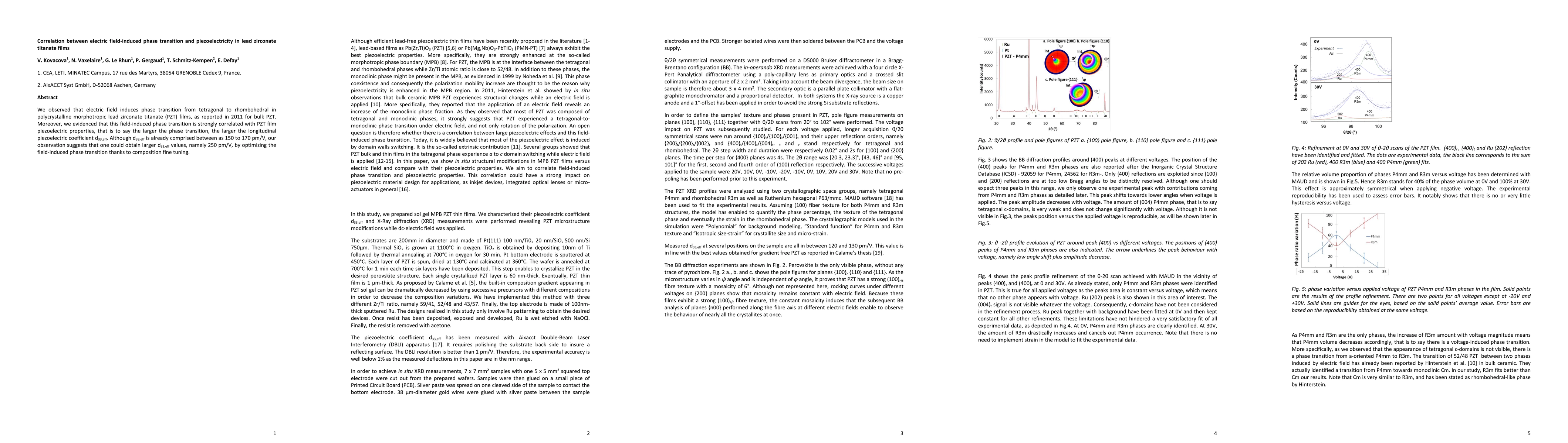 This study reveals that electric fields induce a phase transition from tetragonal to rhombohedral in polycrystalline PZT films, correlating this transition with enhanced piezoelectric properties. Optimizing the phase transition through composition adjustments could potentially increase the longitudinal piezoelectric coefficient d 33,eff to 250 pm/V.