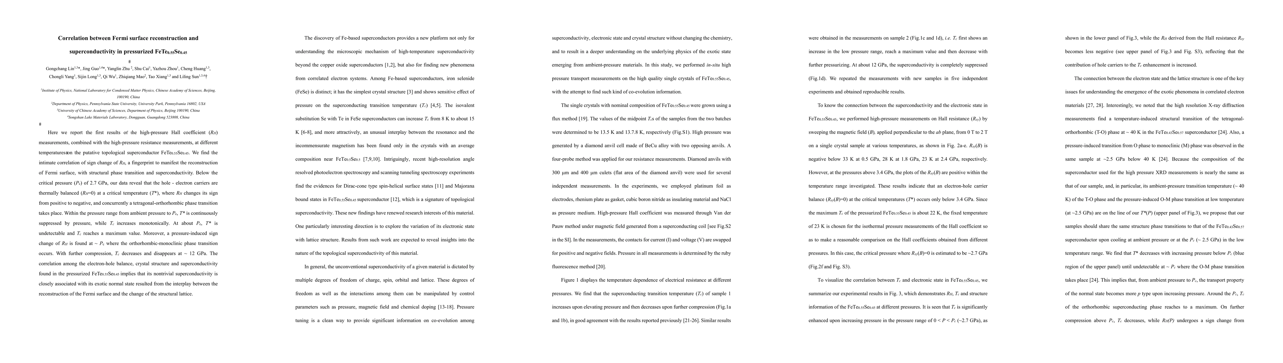 This study demonstrates a strong correlation between Fermi surface reconstruction and superconductivity in pressurized FeTe0.55Se0.45. High-pressure measurements reveal that a sign change in the Hall coefficient, indicative of Fermi surface reconstruction, coincides with structural phase transitions and the onset of superconductivity.