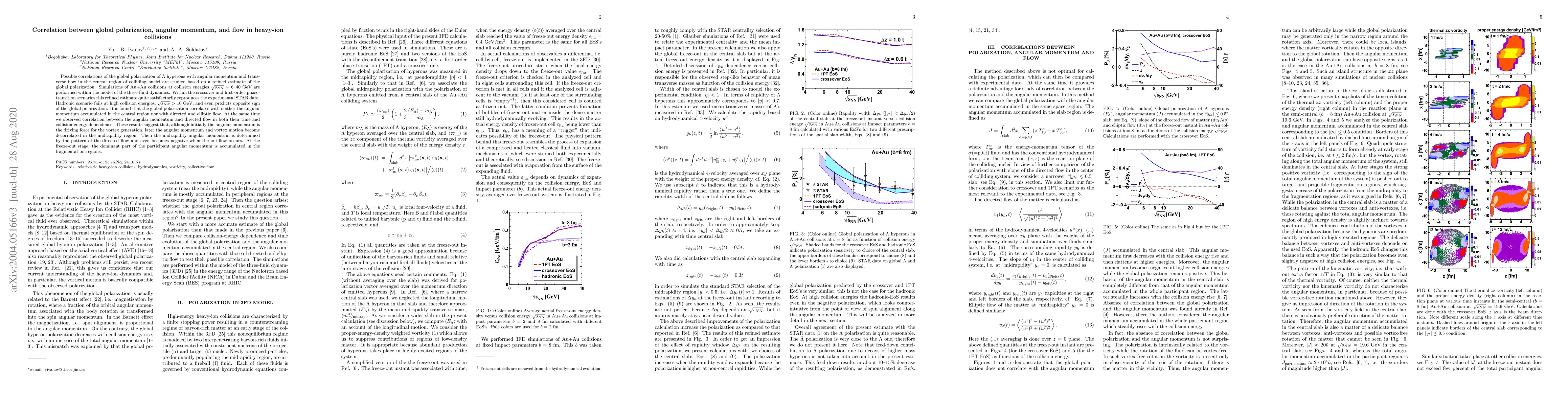 Possible correlations of the global polarization of $\Lambda$ hyperons with the angular momentum and transverse flow in the central region of colliding nuclei are studied based on refined estimate of the global polarization. Simulations of Au+Au collisions at collision energies $\sqrt{s_{NN}}=$ 6-40 GeV are performed within the model of the three-fluid dynamics. Within the crossover and first-order-phase-transition scenarios this refined estimate quite satisfactorily reproduces the experimental STAR data. Hadronic scenario fails at high collision energies, $\sqrt{s_{NN}}>$ 10 GeV, and even predicts opposite sign of the global polarization. It is found that the global polarization correlates with neither the angular momentum accumulated in the central region nor with directed and elliptic flow. At the same time we observed correlation between the angular momentum and directed flow in both their time and collision-energy dependence. These results suggest that, although initially the angular momentum is the driving force for the vortex generation, later the angular momentum and vortex motion become decorrelated in the midrapidity region. Then the midrapidity angular momentum is determined by the pattern of the directed flow and even becomes negative when the antiflow occurs. At the freeze-out stage, the dominant part of the participant angular momentum is accumulated in the fragmentation regions.