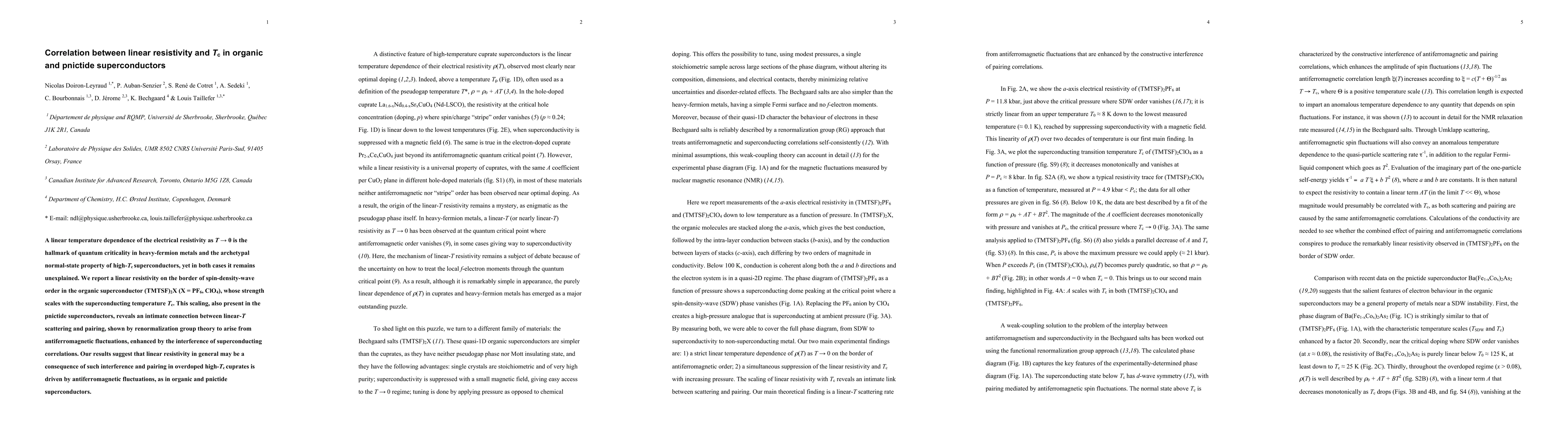 This study reveals a correlation between linear resistivity at low temperatures and the critical temperature (Tc) in organic and pnictide superconductors, suggesting that such resistivity is driven by antiferromagnetic fluctuations enhanced by superconducting correlations. The findings imply a common mechanism linking linear resistivity and superconductivity across different material classes.
