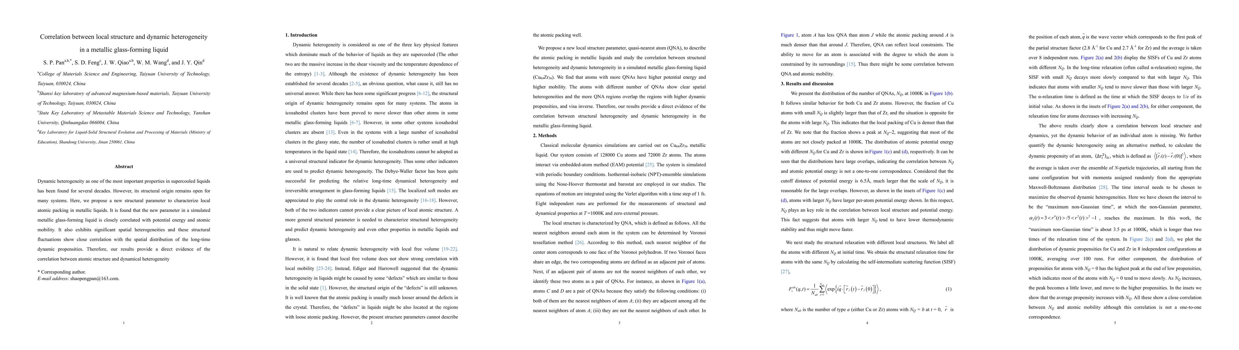 The study introduces a new structural parameter to characterize local atomic packing in metallic glass-forming liquids, revealing a close correlation between this parameter and potential energy, atomic mobility, and spatial dynamic heterogeneity. The results provide direct evidence linking atomic structure and dynamical heterogeneity in supercooled liquids.