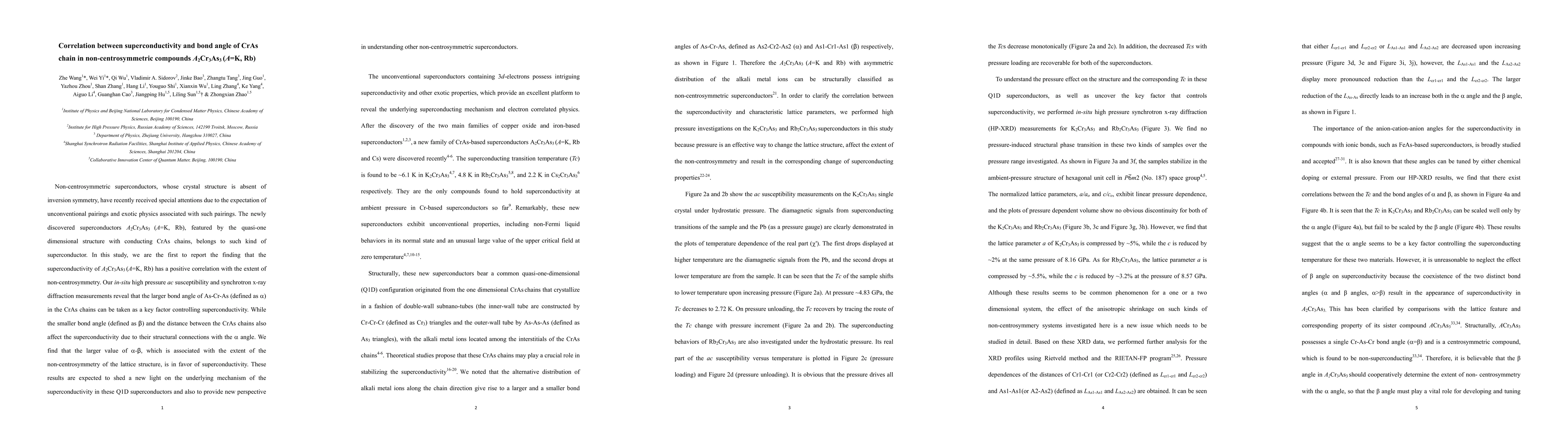 A study found a positive correlation between non-centrosymmetry and superconductivity in quasi-one-dimensional compounds A2Cr3As3 (A=K, Rb). The researchers discovered that the extent of non-centrosymmetry is linked to the size of bond angles controlling superconductivity.