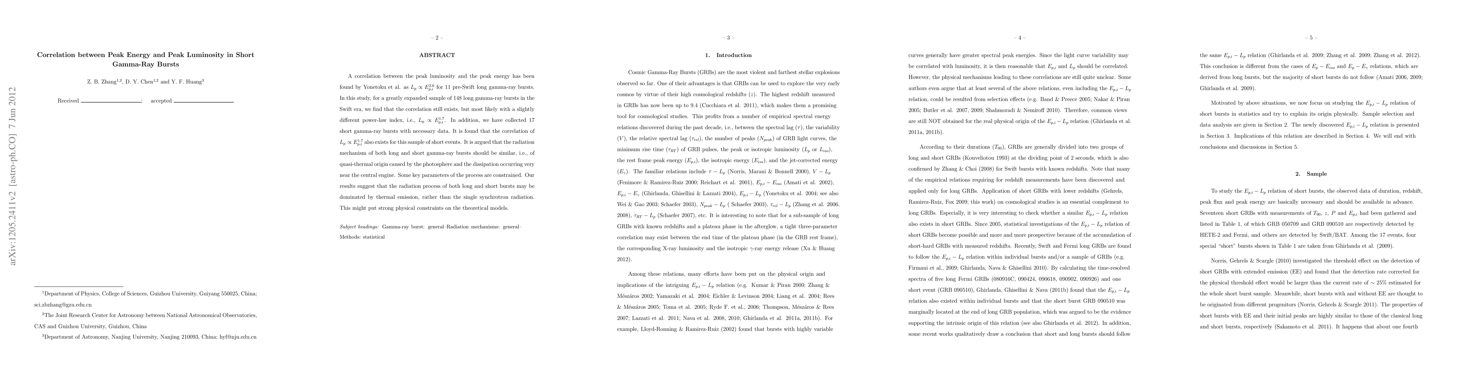 This study confirms a correlation between peak luminosity and peak energy in both long and short gamma-ray bursts, with a power-law index of $L_{p}\propto E_{p,i}^{1.7}$ for both types, suggesting a quasi-thermal radiation mechanism. The findings imply that thermal emission dominates the radiation process, challenging existing theoretical models.