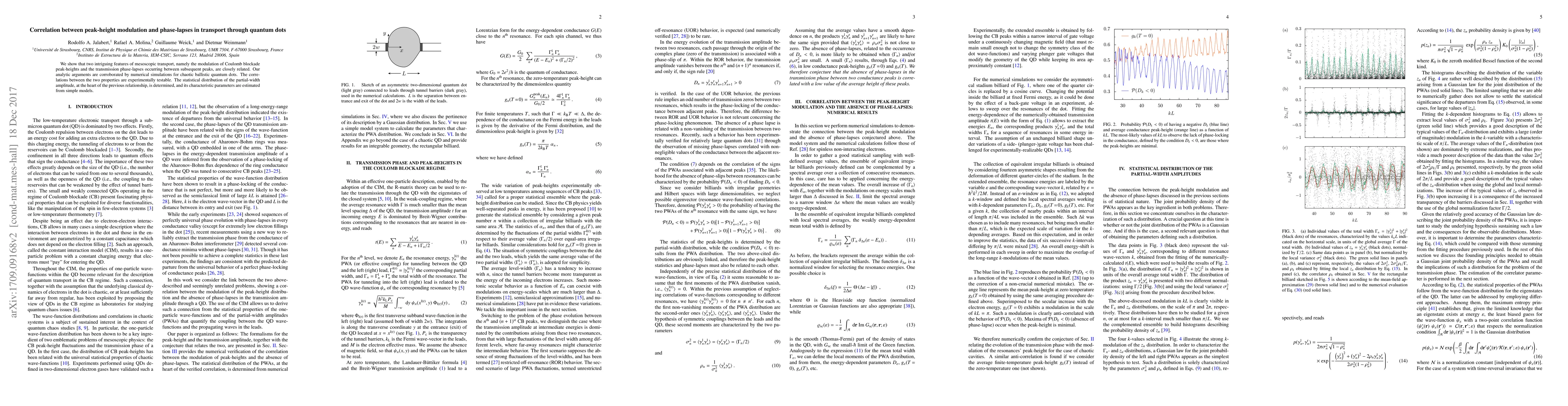 This paper investigates the correlation between peak-height modulation in Coulomb blockade and phase-lapses in quantum dot transport, demonstrating their close relationship through analytic arguments and numerical simulations. Experimental tests and statistical distributions of partial-width amplitude are also discussed.