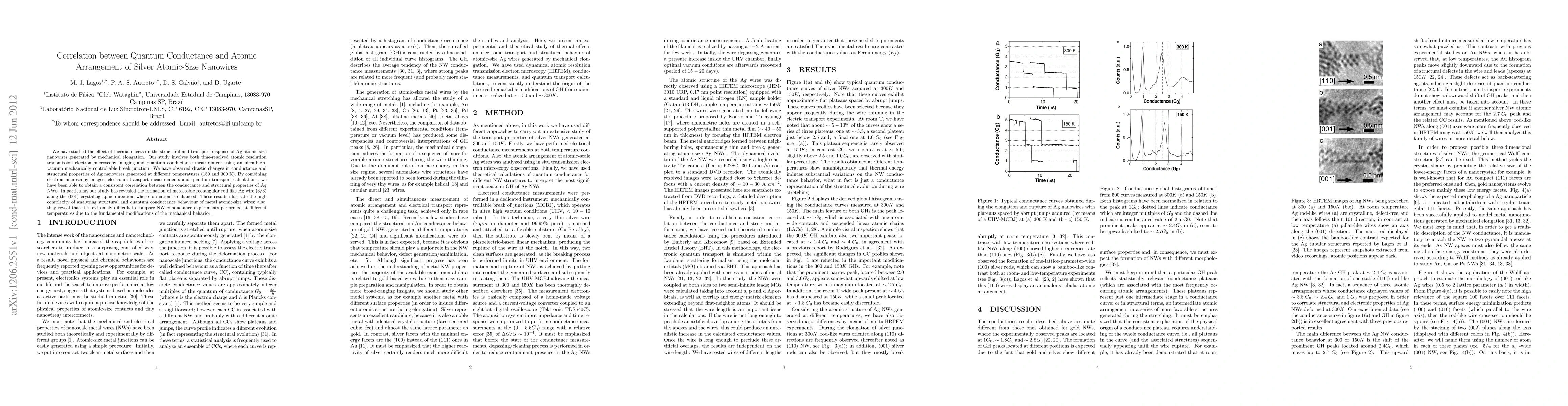 This study correlates the quantum conductance of Ag atomic-size nanowires with their atomic arrangement, revealing significant temperature-dependent changes in conductance and structural properties observed via electron microscopy and quantum conductance measurements. The findings highlight the complexity of metal nanowires' quantum behavior and structural modifications.