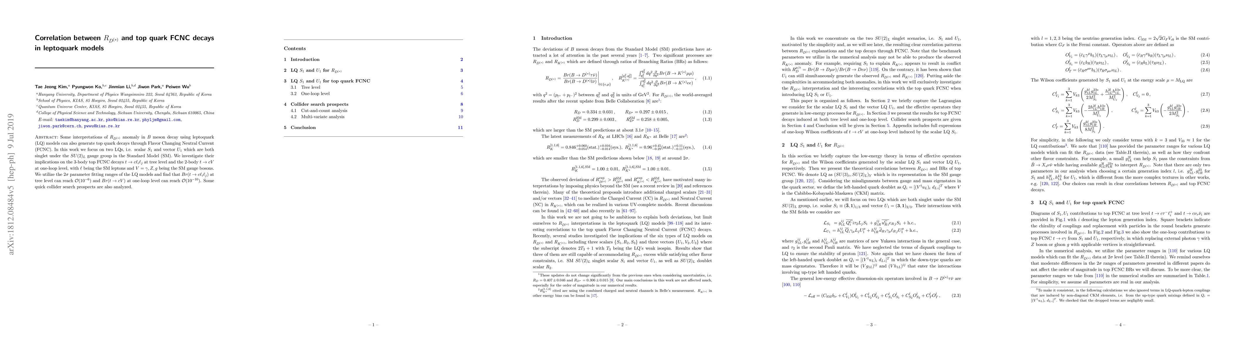Some interpretations of $R_{D^{(*)}}$ anomaly in $B$ meson decay using leptoquark (LQ) models can also generate top quark decays through Flavor Changing Neutral Current (FCNC). In this work we focus on two LQs, i.e. scalar $S_1$ and vector $U_1$ which are both singlet under the $SU(2)_L$ gauge group in the Standard Model (SM). We investigate their implications on the 3-body top FCNC decays $t\to c \ell_i \ell_j$ at tree level and the 2-body $t\to c V$ at one-loop level, with $\ell$ being the SM leptons and $V=\gamma, Z, g$ being the SM gauge bosons. We utilize the $2\sigma$ parameter fitting ranges of the LQ models and find that $Br(t\to c \ell_i \ell_j)$ at tree level can reach $\mathcal{O}(10^{-6})$ and $Br(t\to c V)$ at one-loop level can reach $\mathcal{O}(10^{-10})$. Some quick collider search prospects are also analyzed.