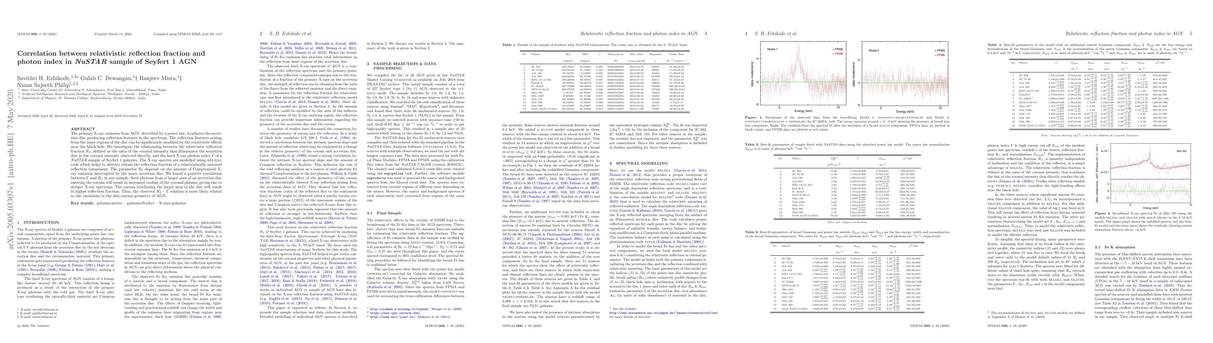 This study investigates the correlation between the relativistic reflection fraction $R_f$ and the hard X-ray photon index $\Gamma$ in a NuSTAR sample of Seyfert 1 galaxies, finding a positive relationship likely due to variations in the disc-corona geometry of AGN. The relxill code models the X-ray spectra, revealing that a larger area of the accretion disc interacting with the corona results in a higher reflection fraction.